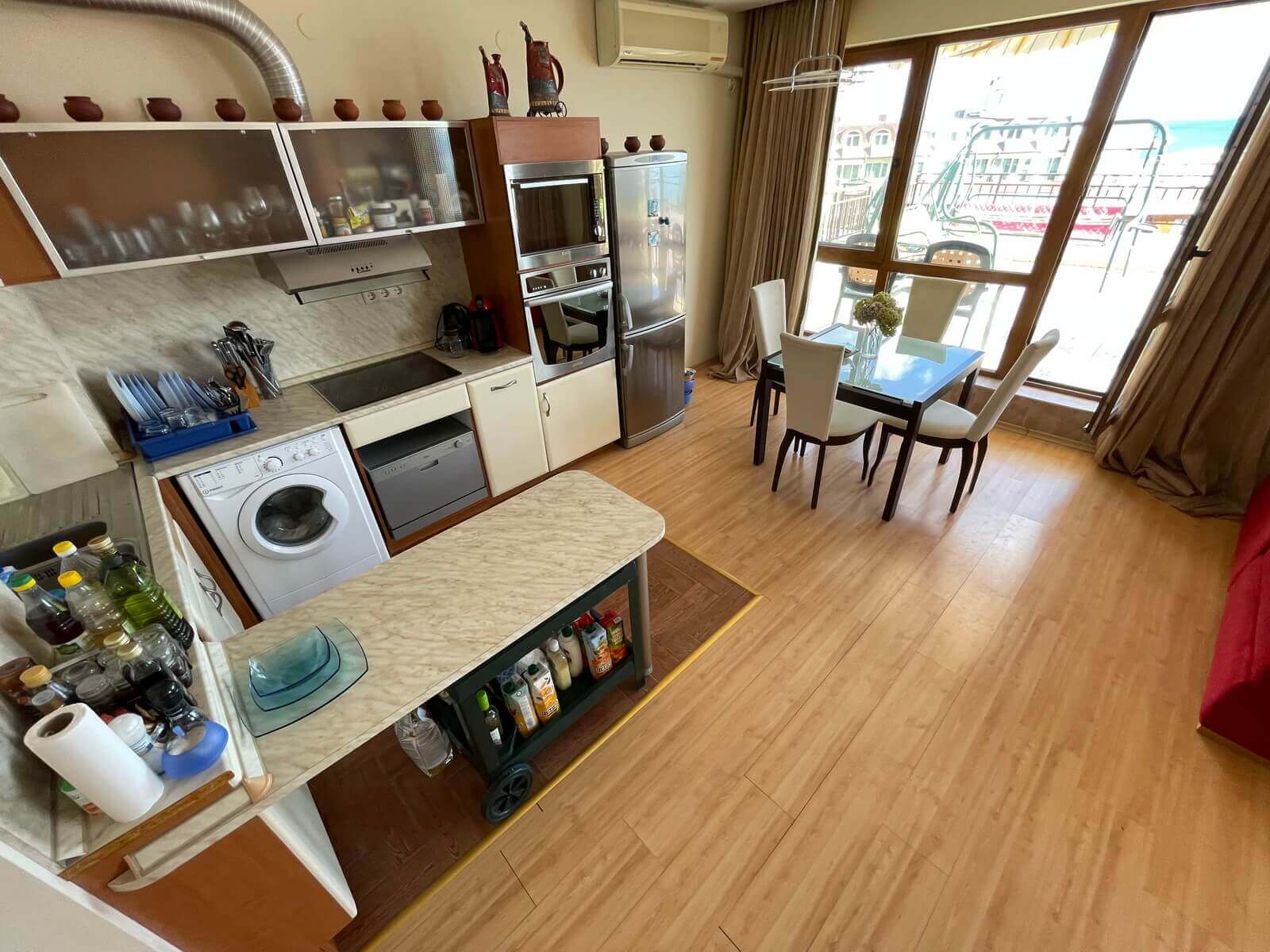Предлагаем на продажу просторный, светлый апартамент с двумя спальнями в Елените, комплексе Messambria Fort Noks Beach, на первой линии моря.