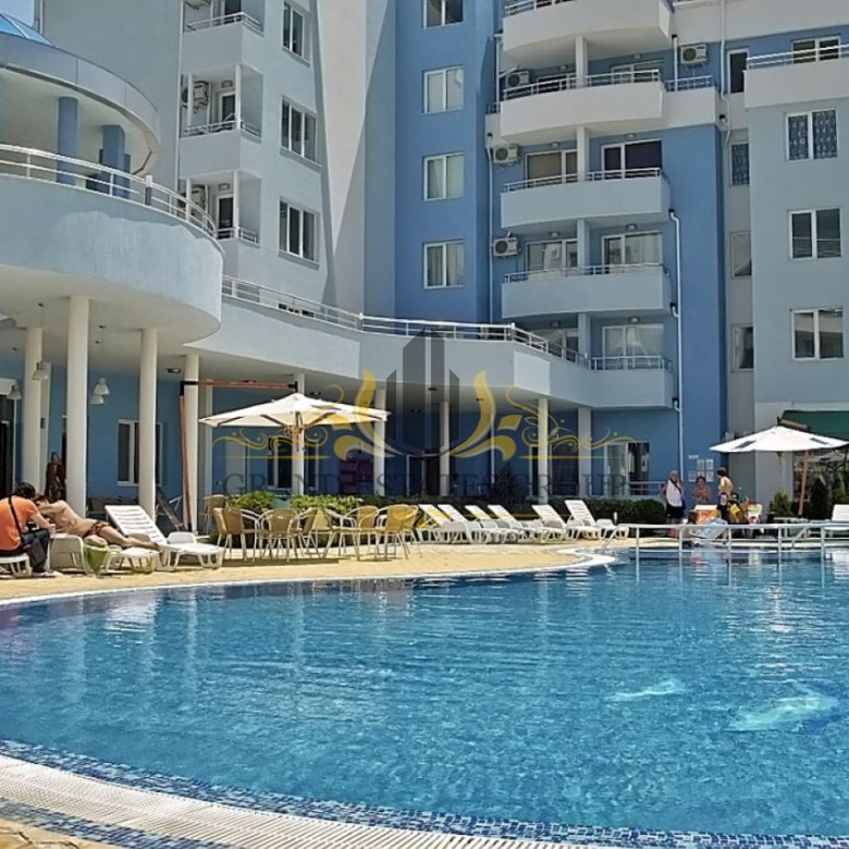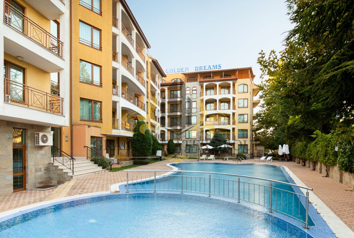 Предлагаем на продажу двухкомнатную квартиру в развитом районе Солнечного Берега, в 100 метрах от известного супермаркета МЛАДОСТ в комплексе Голден Дримс.