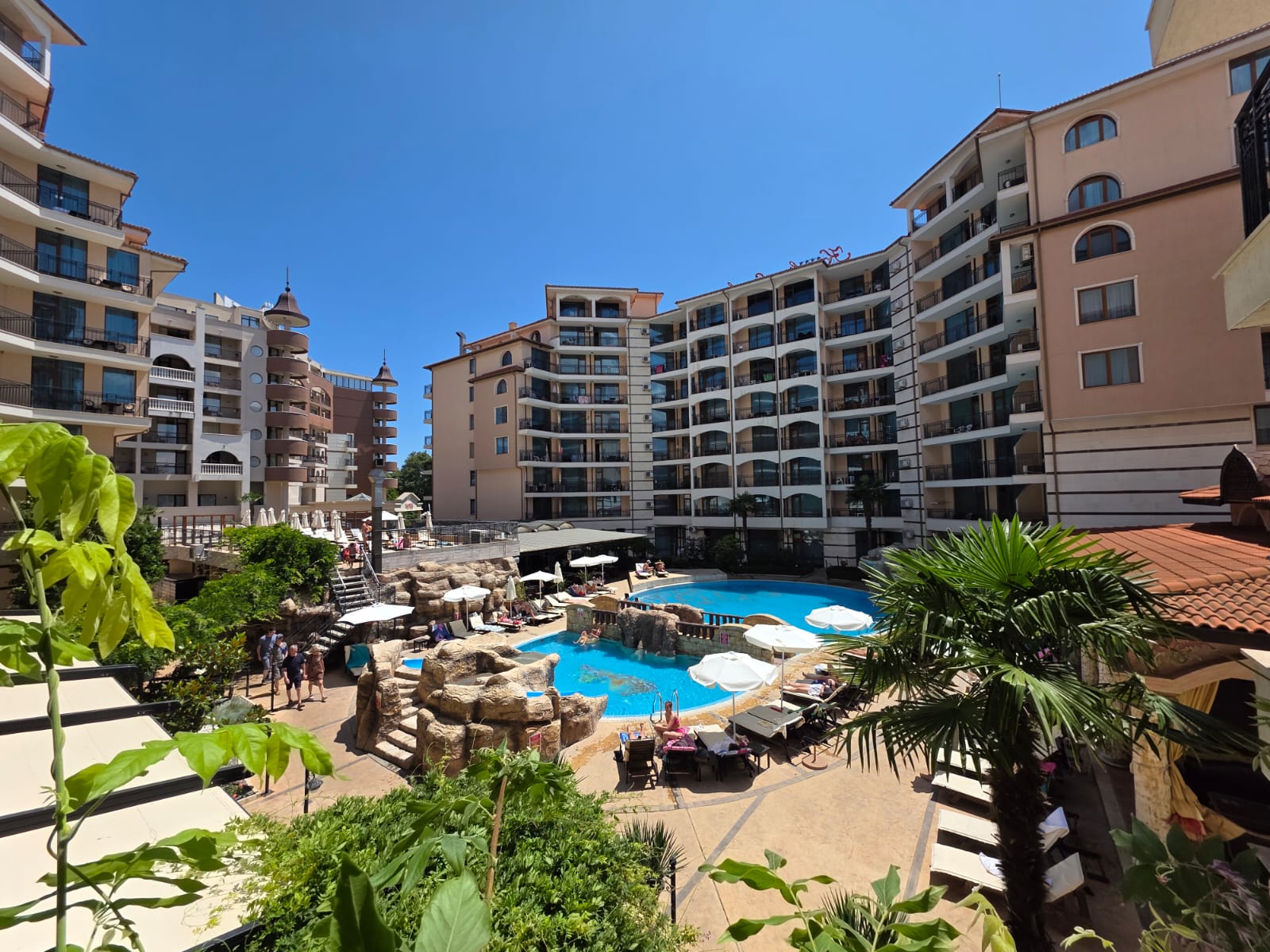 На территории комплекса к вашим услугам: ресепшн, благоустроенный сад, фитнес-центр, два ресторана, бар, бассейн с каскадом и детской секцией, СПА-центр с сауной, джакузи, салон красоты и многое другое. Охрана и открытая парковка гарантируют вашу безопасность и комфорт.