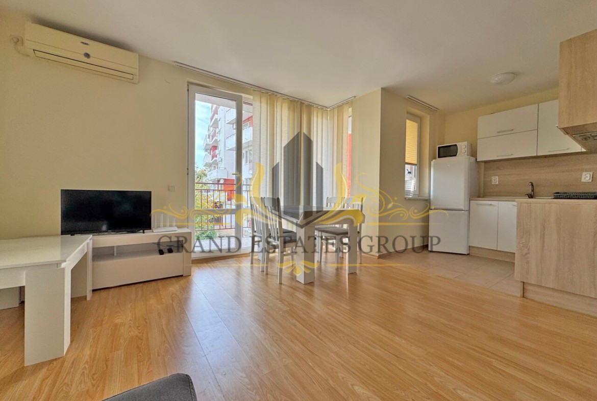 Апартамент общей площадью 70 кв.м расположена на 2 этаже здания с лифтом и состоит из прихожей, гостиной с зоной для кухни, спальни, ванной комнаты с туалетом и террасы с видом на территорию комплекса. Квартира оборудована мебелью и техникой.