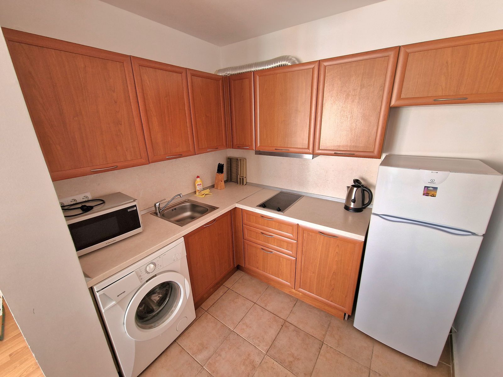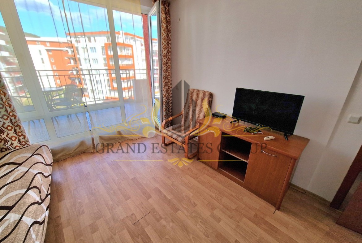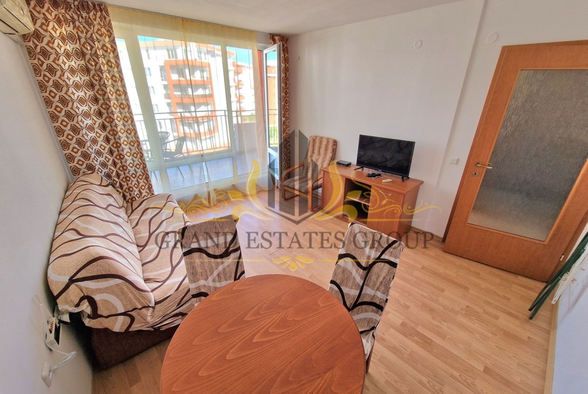 Апартамент площадью 67 кв.м расположена на 6 этаже здания с лифтом и состоит из прихожей, просторной гостиной с зоной для кухни, спальни, ванной комнаты с туалетом и террасы с видом на территорию комплекса Квартира меблирована и оборудована мебелью и техникой.