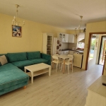 Квартира с площадью 65 м2 находится на 2 этаже и состоит из прихожей, большой гостиной с кухонным блоком и обеденной зоной, спальни, санузла с душевой и террасы с приятным видом на озеленённую территорию комплекса. Квартира полностью оснащена мебелью и техникой.
