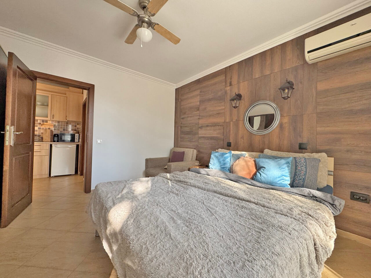 Квартира общей площадью 66 кв.м., расположена на 1 этаже пятиэтажного здания с лифтом и состоит из прихожей, гостиной с зоной для кухни, отдельной спальни, ванной комнаты с туалетом и просторной террасы с видом на территорию комплекса и город. Квартира предлагается с мебелью.