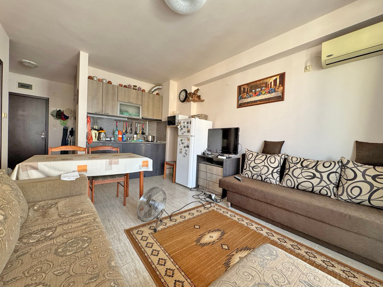 Предлагаем на продажу полностью меблированную двухкомнатную квартиру в небольшом семейном комплексе на Солнечном берегу.