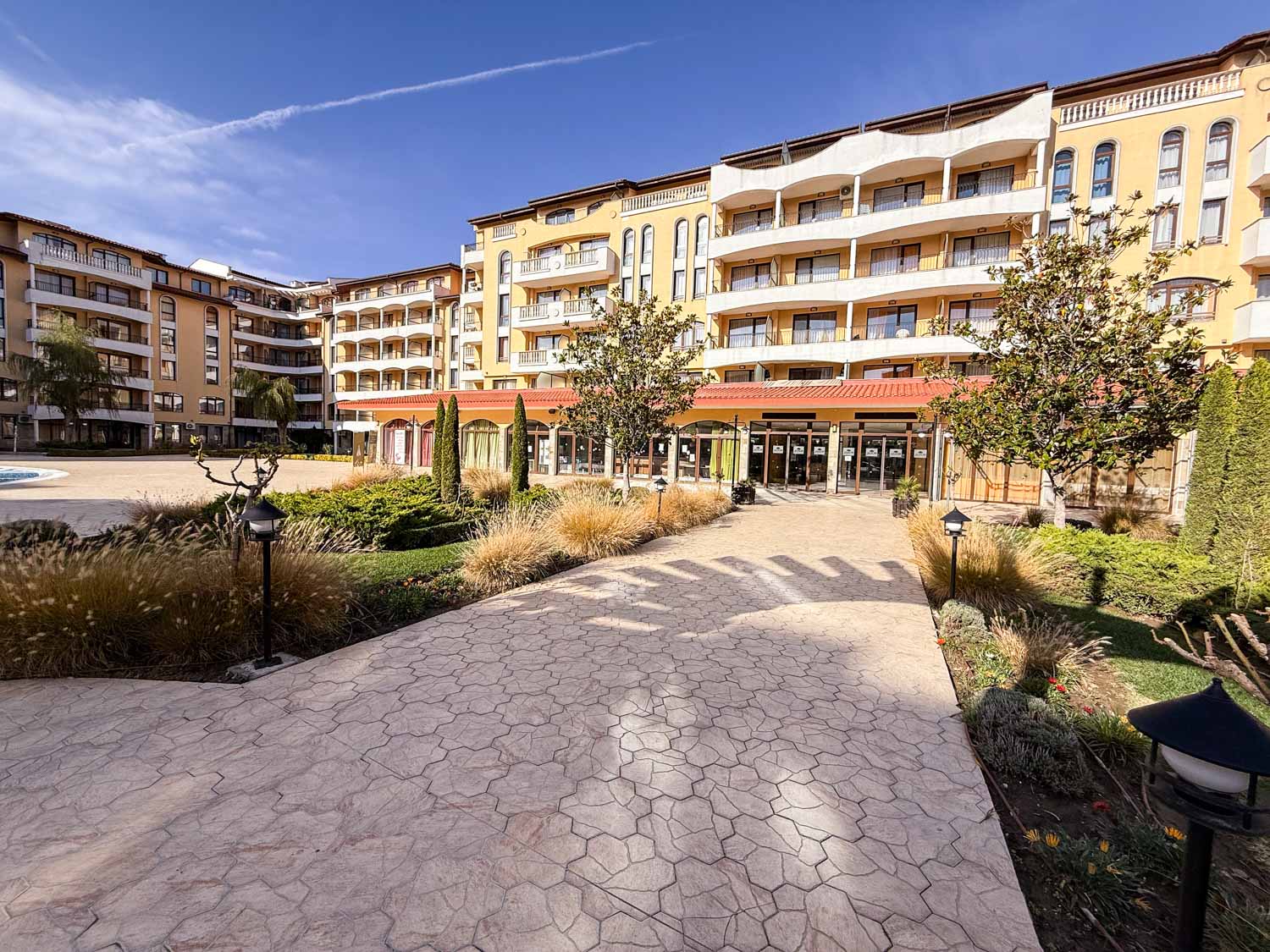 Комплекс большой, закрытый, расположен в центральной части курорта Солнечный Берег, в 400 метрах от пляжа. На территории комплекса для гостей и собственников два больших бассейна, детский бассейн, ресторан, бар, детская площадка и современный СПА-центр. Охрана и видеонаблюдение работают круглый год.