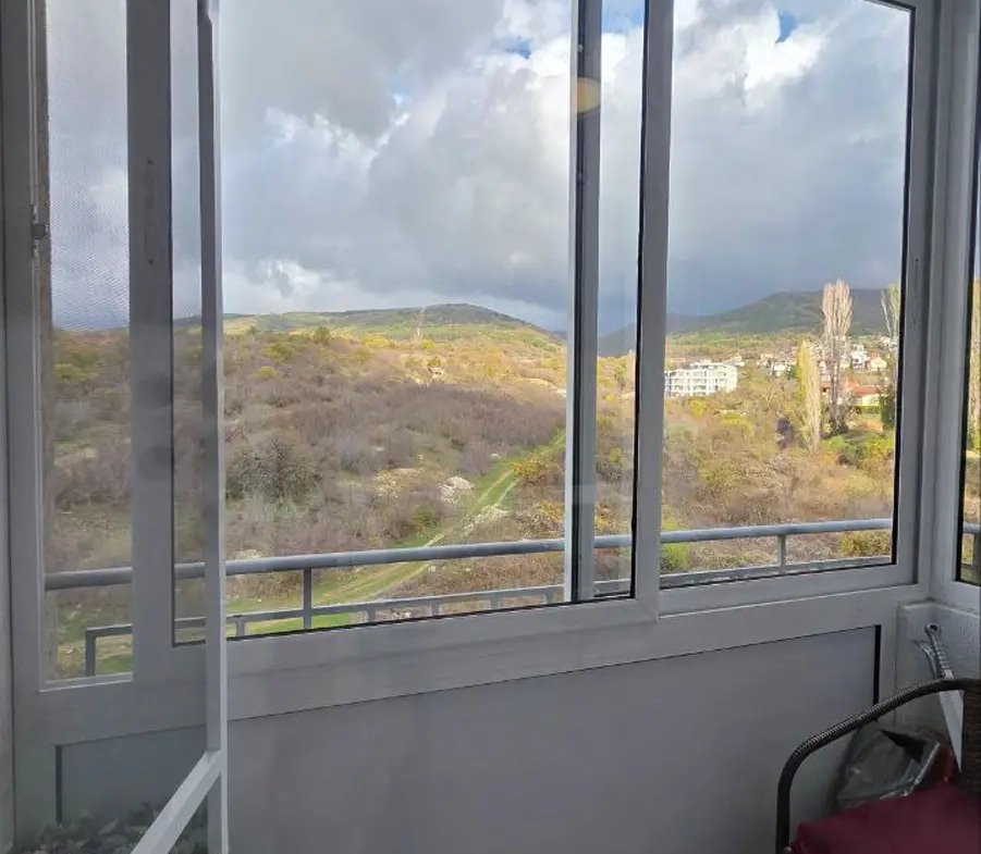 Квартира общей площадью 93,3 кв.м. расположена на пятом этаже в здании с лифтом. Планировка: прихожая, гостиная с кухней площадью 30 кв.м., две спальни, ванная комната с душевой кабиной, два застекленные террасы, одна с прямым видом на море. Квартира продается с новой мебелью и техникой в отличном жилом состоянии.