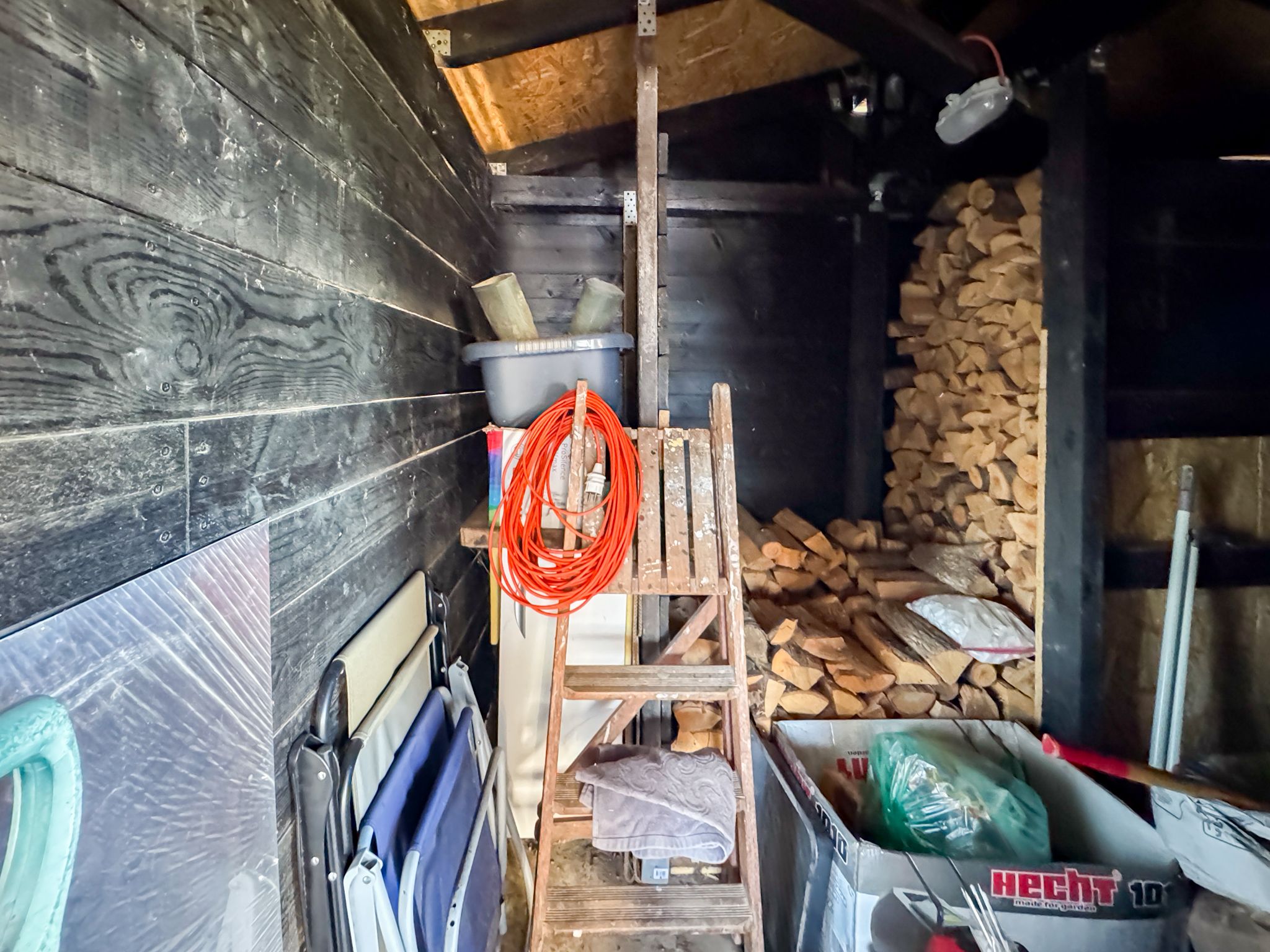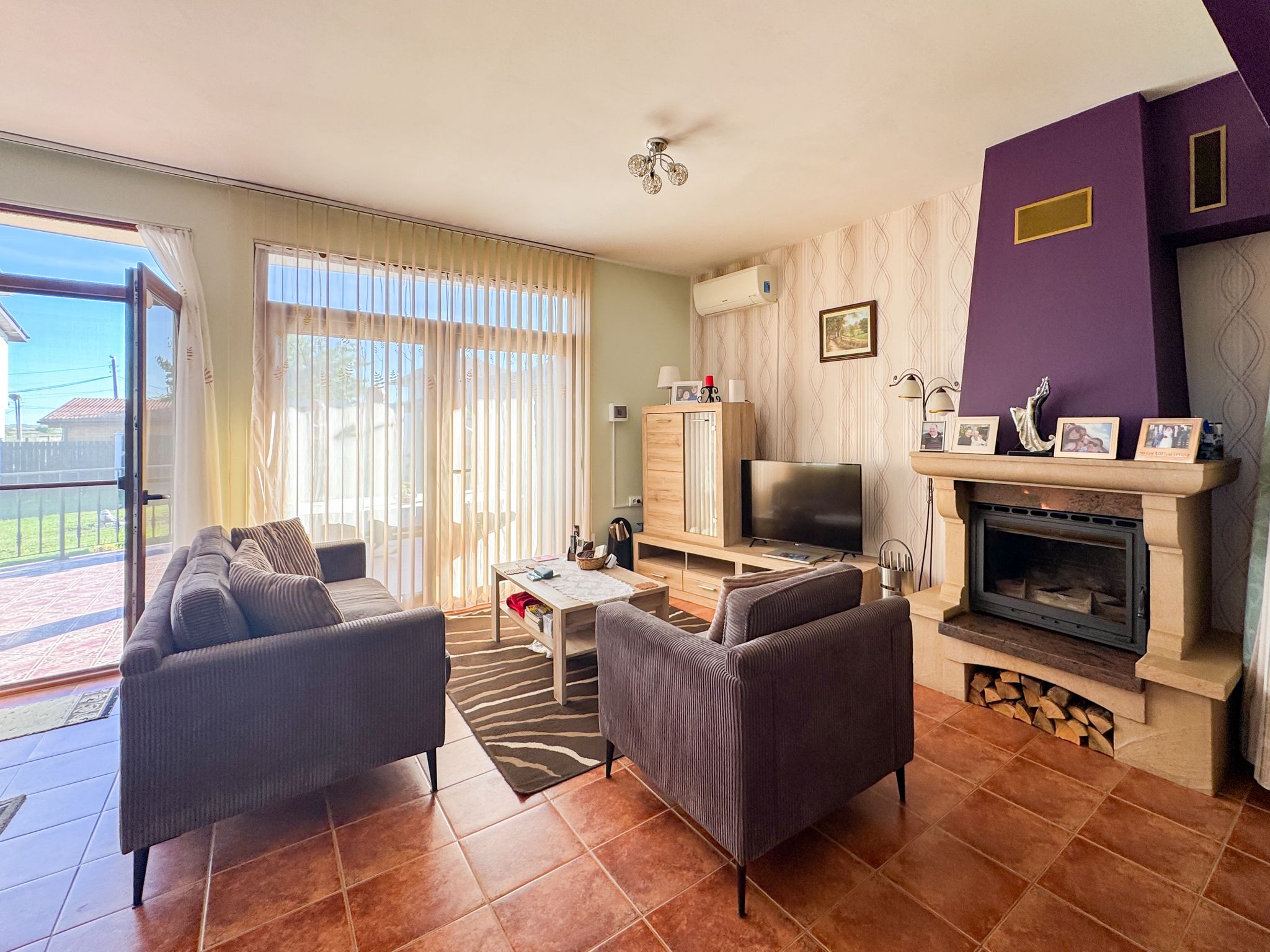 Первый этаж: прихожей, просторной гостиной с кухонной зоной и камином, санузла с душем, кладового помещения с бойлером и большой террасы с местами отдыха. Второй этаж: двух спален с общей террасой и санузла с душевой кабиной. Дом оснащён мебелью и техникой, в каждой комнате установлены кондиционеры.