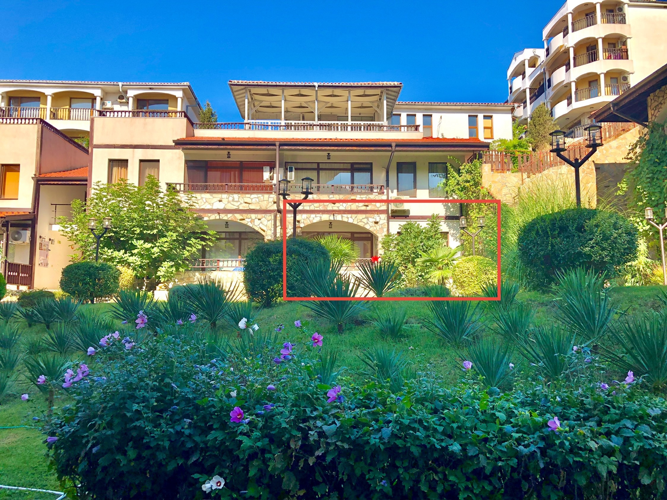 Этара 1 – жилой комплекс, расположенный на первой линии моря на курорте Святой Влас. Комплекс входят в мини-курорт Диневи Резорт. До пристани для яхт всего 400 м. До центра городка можно дойти всего за 10 минут. Рядом разнообразная инфраструктура – кафе, клубы, рестораны, бары, салоны красоты и прочее. Территория комплекса ухожена и огорожена по периметру.