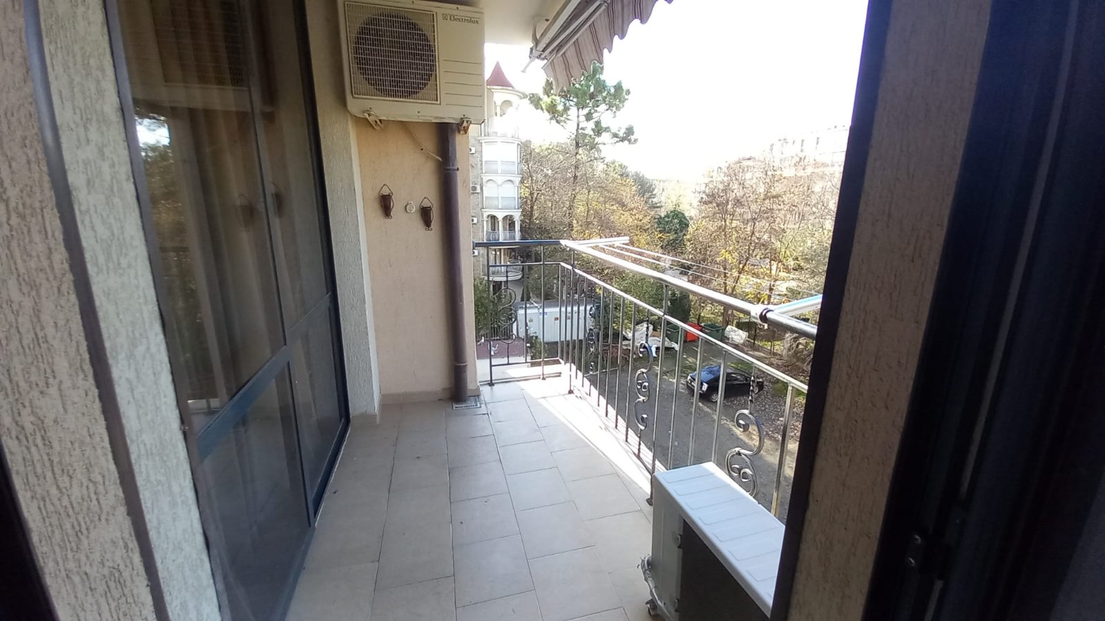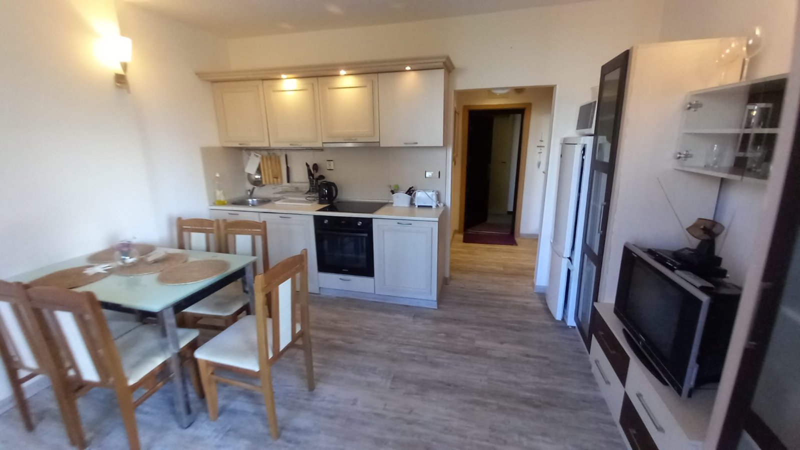 Предлагаем на продажу меблированную двухкомнатную квартиру в закрытом комплексе на Солнечном Берегу. Квартира расположена на 4 этаже (с лифтом) и имеет общую площадь 63 кв. м. Она состоит из прихожей, гостиной с кухней, одной спальни, ванной комнаты и террасы. Квартира подходит как для постоянного проживания, так и для сдачи в аренду. Комплекс расположен в самой зеленой части курорта, в 7 минутах ходьбы от пляжа. До центра города – 10 минут ходьбы. К услугам гостей открытый бассейн с баром у бассейна, просторное лобби и круглогодичная охрана и обслуживание.