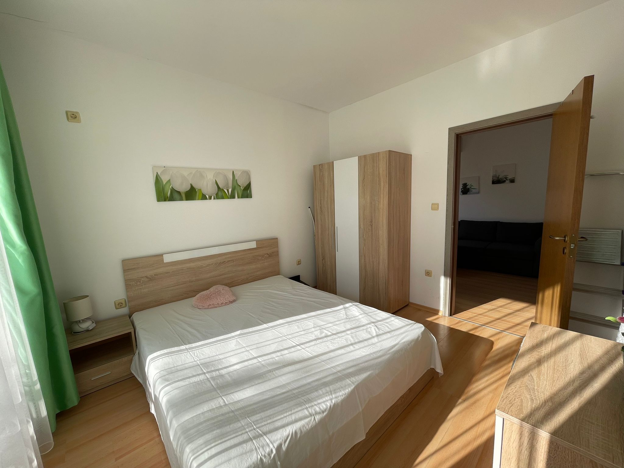 Квартира расположена в закрытом курортном комплексе, расположенном в 3 км от морского курорта Солнечный берег. Предлагается с мебелью и техникой.