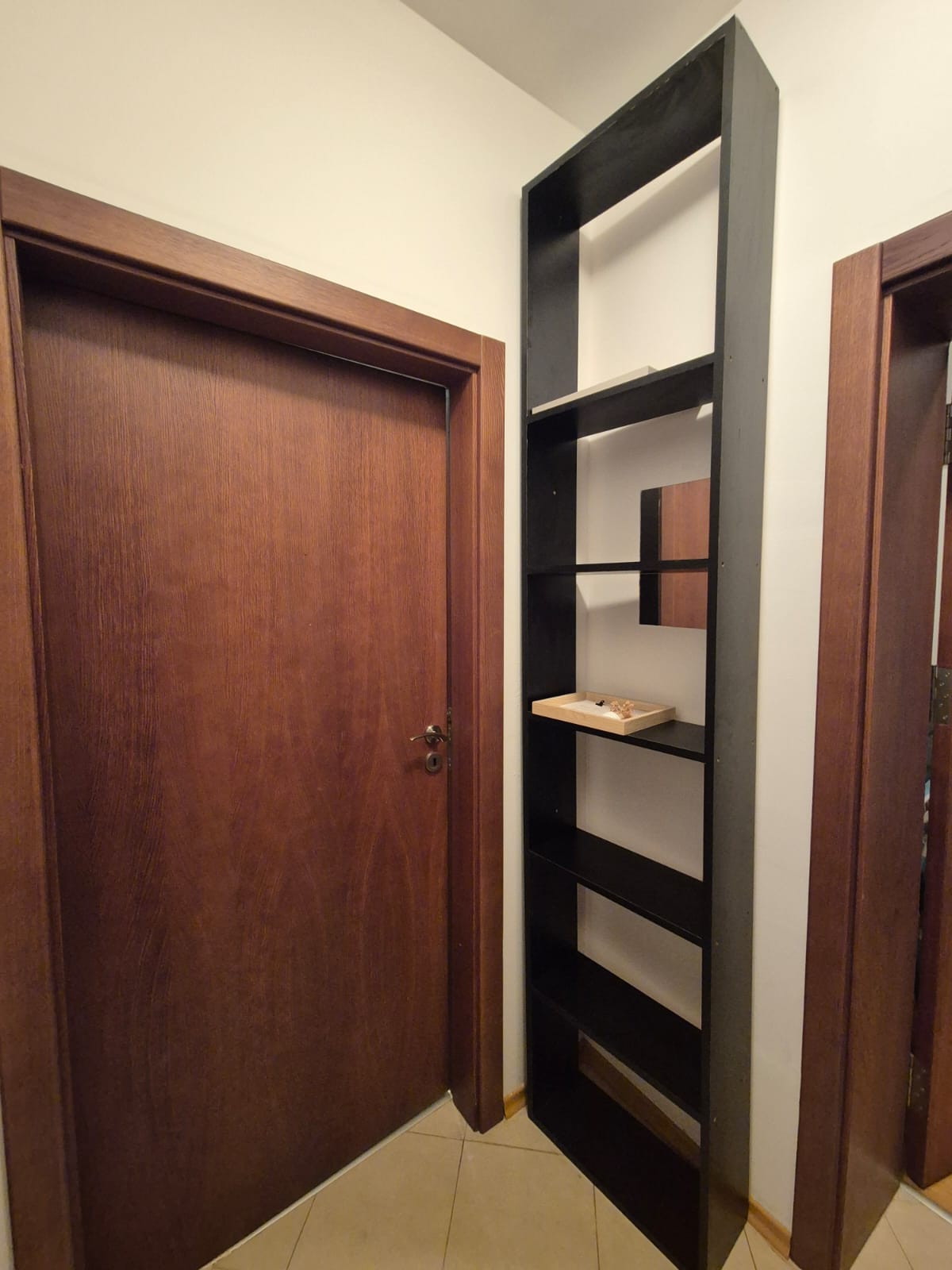 Квартира площадью 63 кв. м. расположена на 6 этаже, и состоит из прихоженй, гостиной с отдельной кухней и зоны столовой, спальни, ванной комнаты с туалетом и террасы с видом на город. Квартира обставлена мебелью и техникой и продаётся со всем оборудованием и техникой.