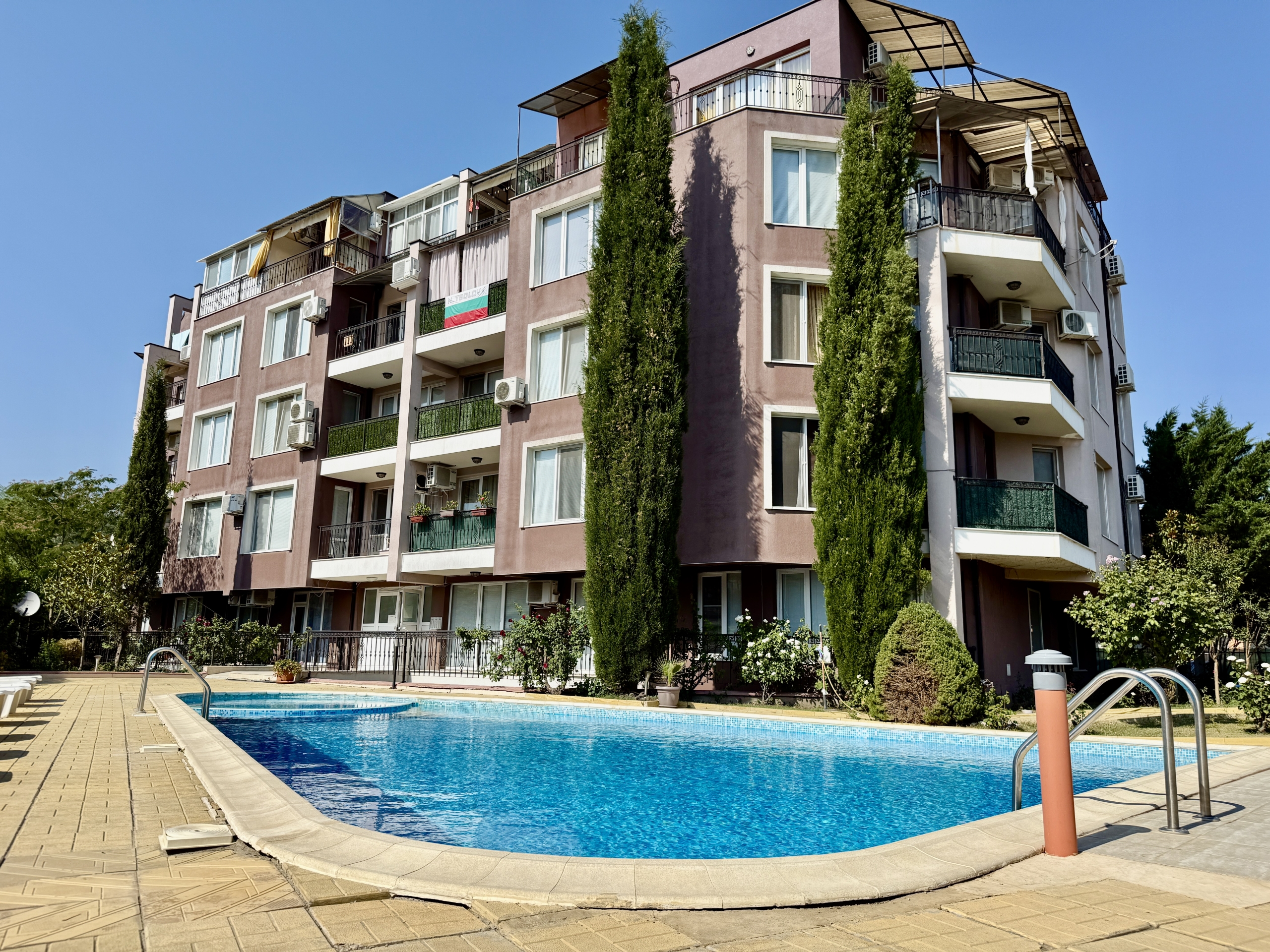 Предлагается к продаже 2-х комнатная квартира без таксы поддержки в начале курортного города Святой Влас для круглогодичного проживания.