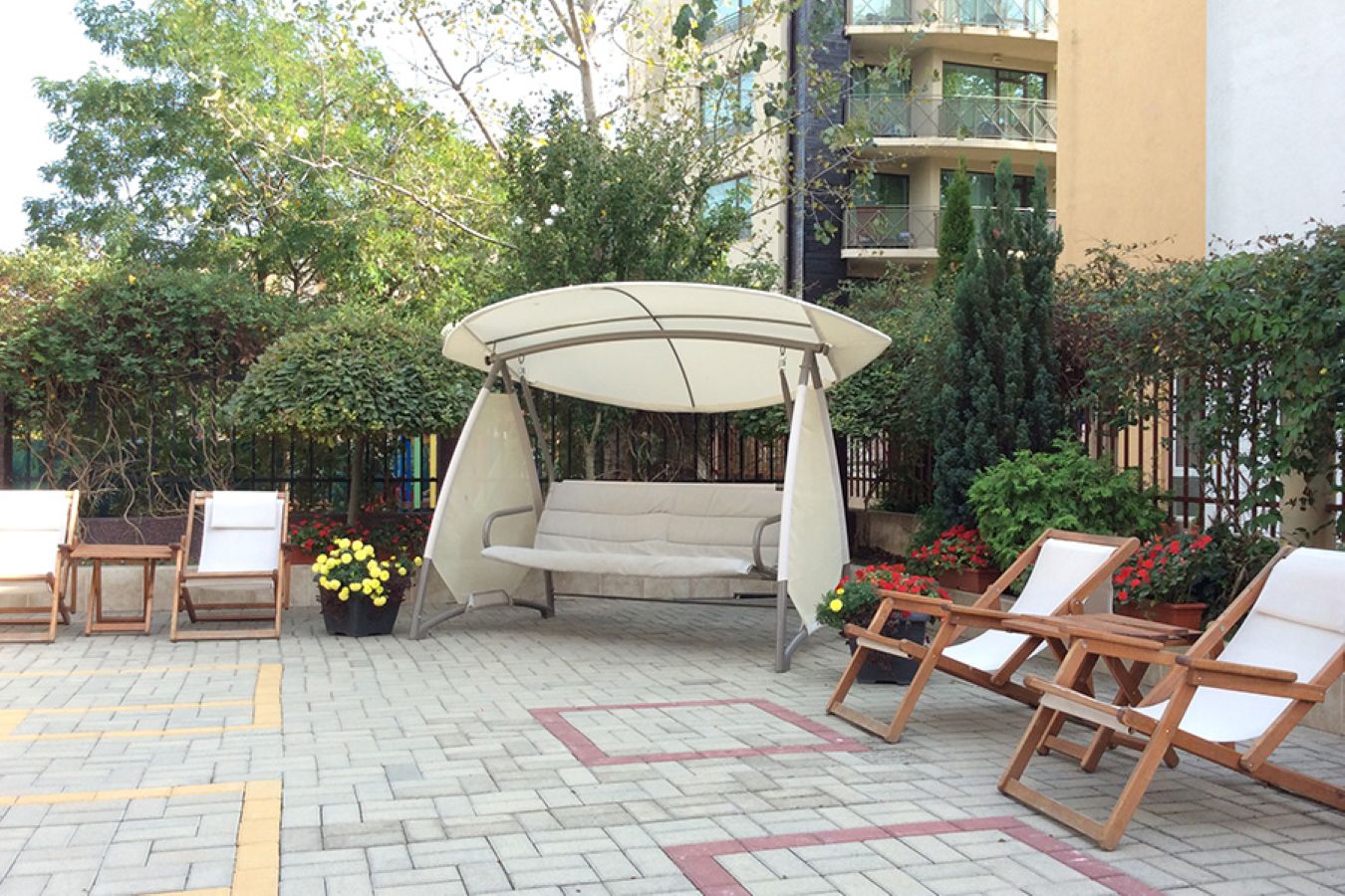 В комплексе есть взрослый и детский бассейны, детская игровая площадка, а также фитнес-центр. Вокруг бассейнов имеется достаточно места для лежаков и зонтов, где вы сможете расслабиться и насладиться солнцем.