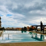 Комплекс оборудован бассейном, зелеными зонами и детской площадкой.