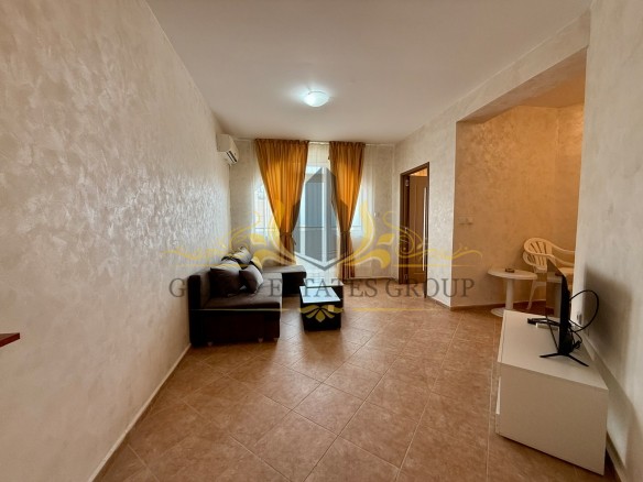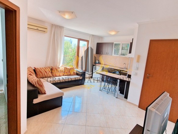 Квартира общей площадью 50 кв.м. находится на 1 этаже. Квартира состоит из: гостиной с кухонным уголком, спальни и террасы. Продается с мебелью и электроприборами.