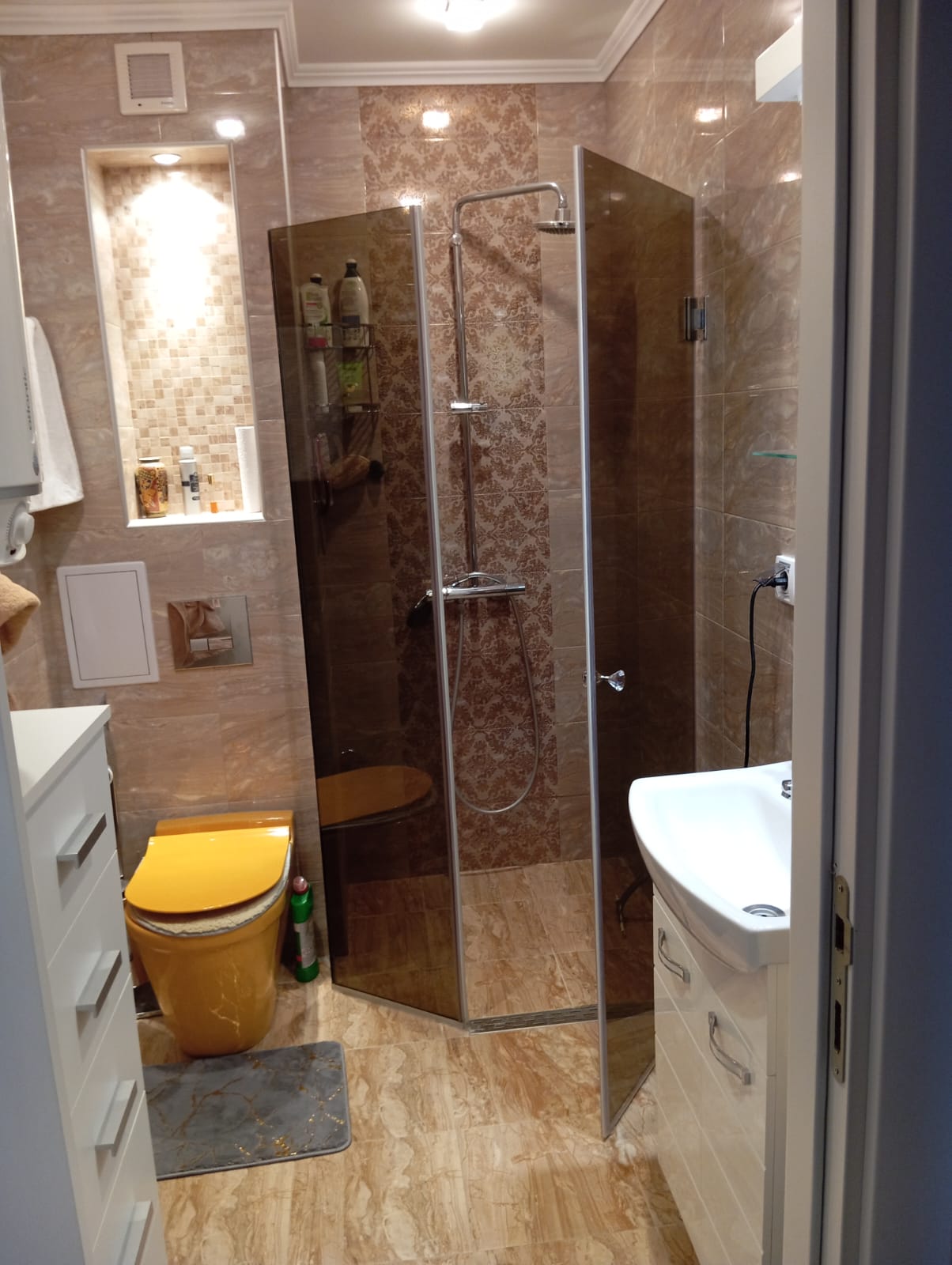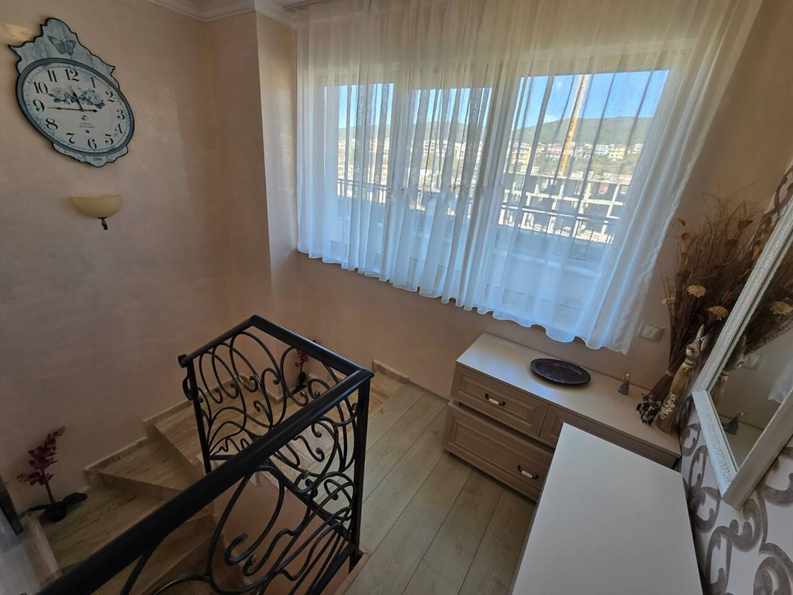 Квартира общей площадью 180 кв.м. – 112 кв.м. квартира и 68 кв.м. терраса – расположена на 4-м и 5-м этажах в здании с красивым лифтом. Удобная планировка: прихожая, гостиная с кухонной и обеденной зонами, ванная комната и лестница на второй этаж, на втором этаже – две спальни, ванная комната и огромная терраса с панорамным видом на город, море и горы. Предлагается на продажу с красивой мебелью и качественной бытовой техникой.