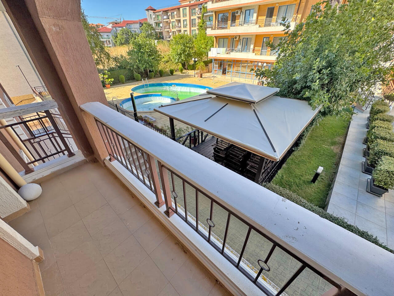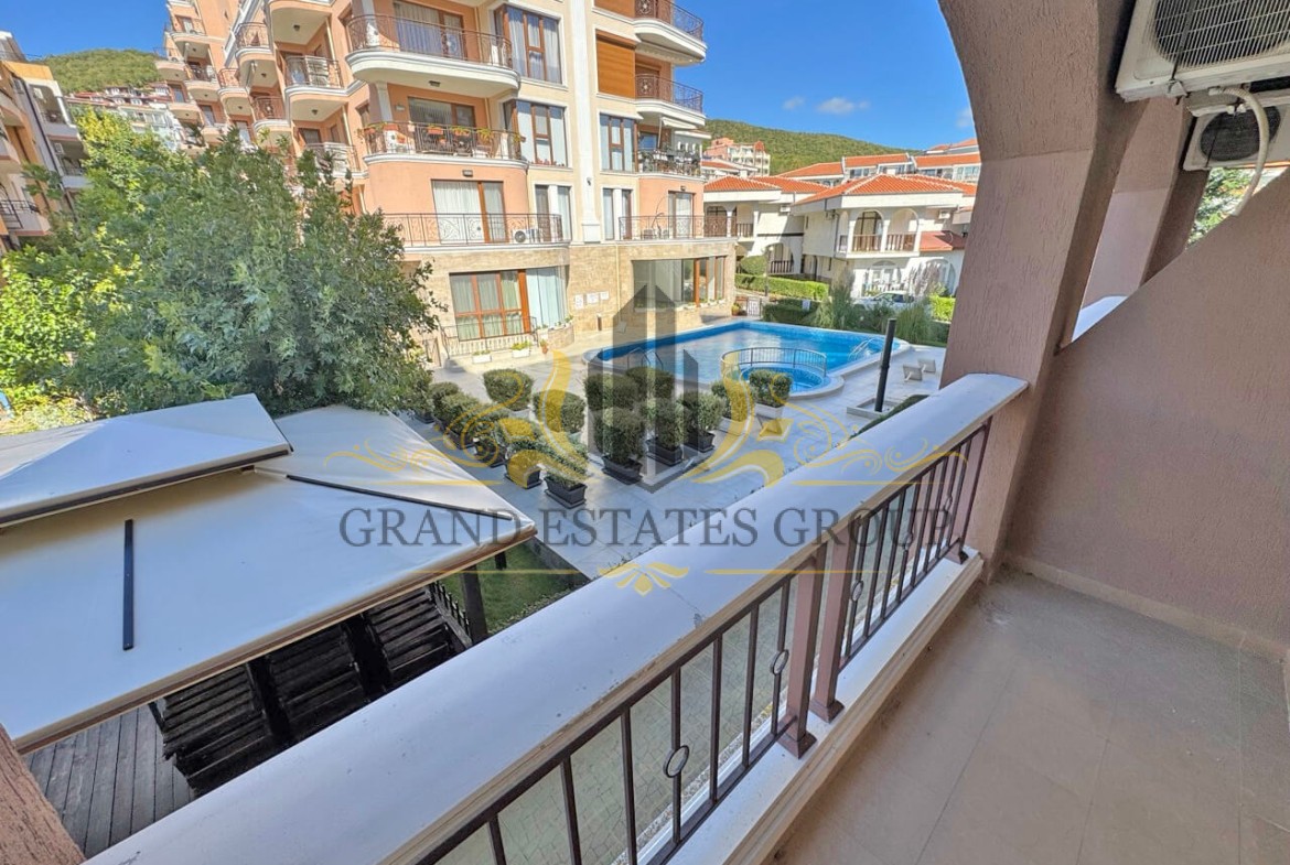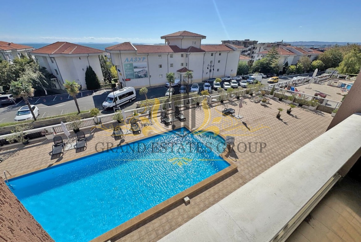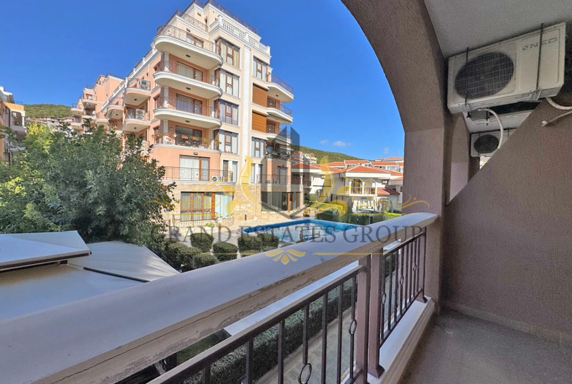 Предлагаем на продажу трехкомнатную квартиру с видом на бассейн и море в популярном комплексе ”Каприз” в центре фешенебельного курорта Святой Влас.
