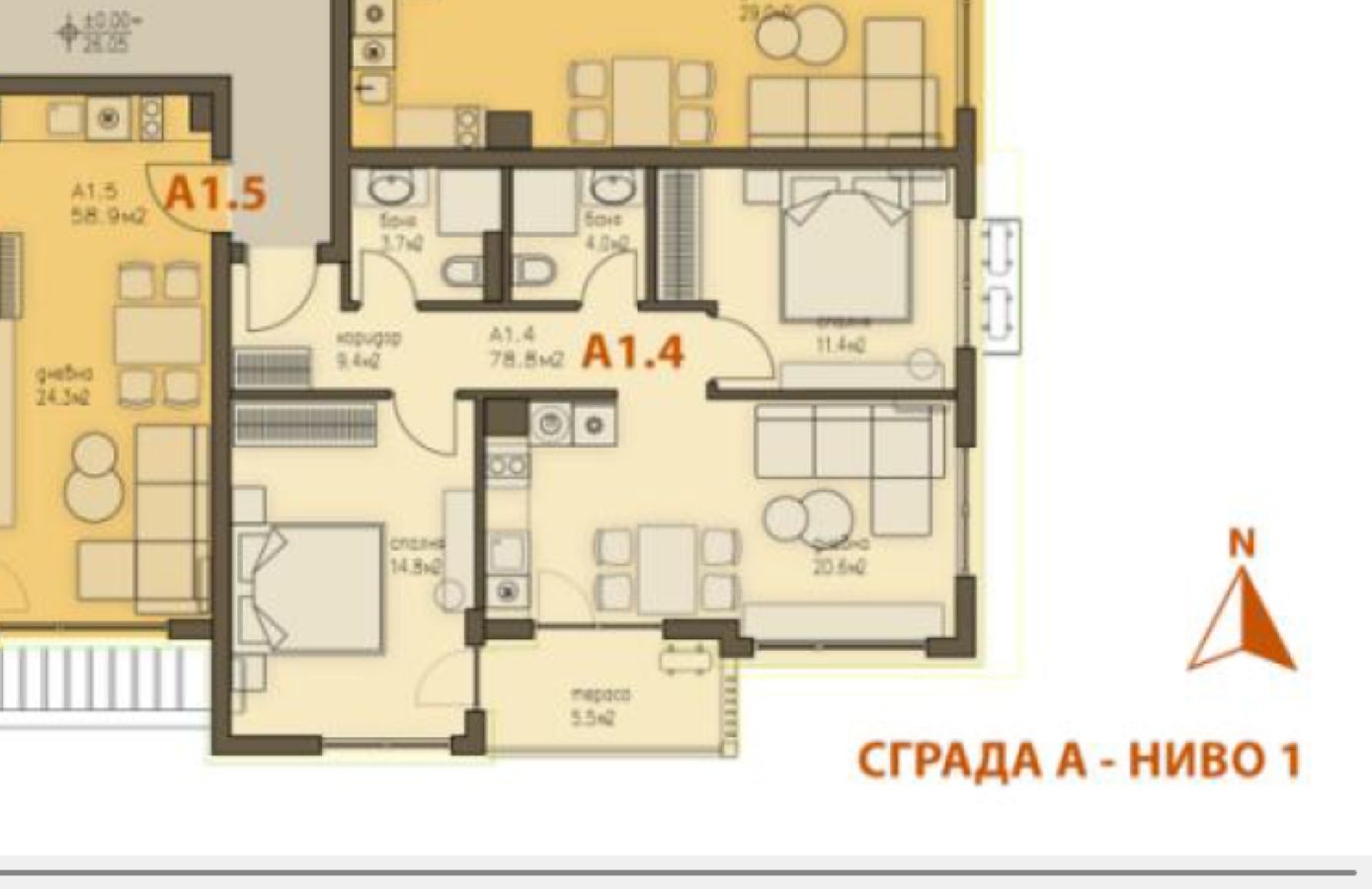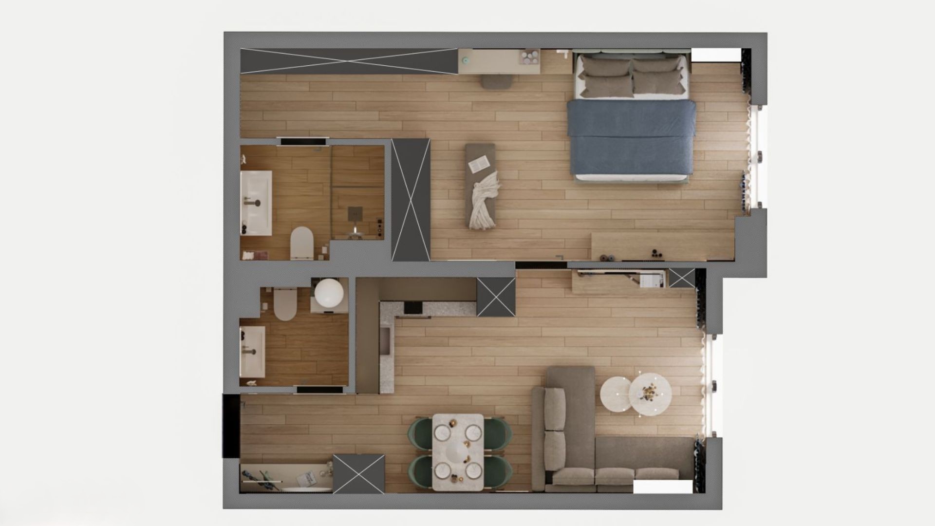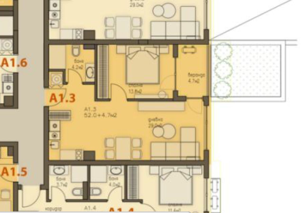 Здание разделено на три секции — A, B и C, каждая по шесть этажей. Покупатели могут выбрать студии, апартаменты с одной и двумя спальнями с различными планировками и площадью, с видом на море, бассейн или горы.