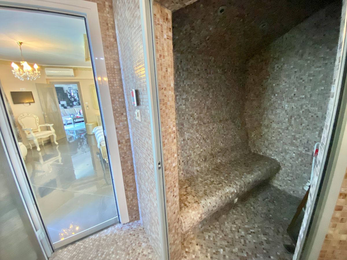 1 этаж: прихожая, гостиная с кухонной и столовой зон, три спальни, две ванные комната, в одной из них – ХАМАМ, три террасы.