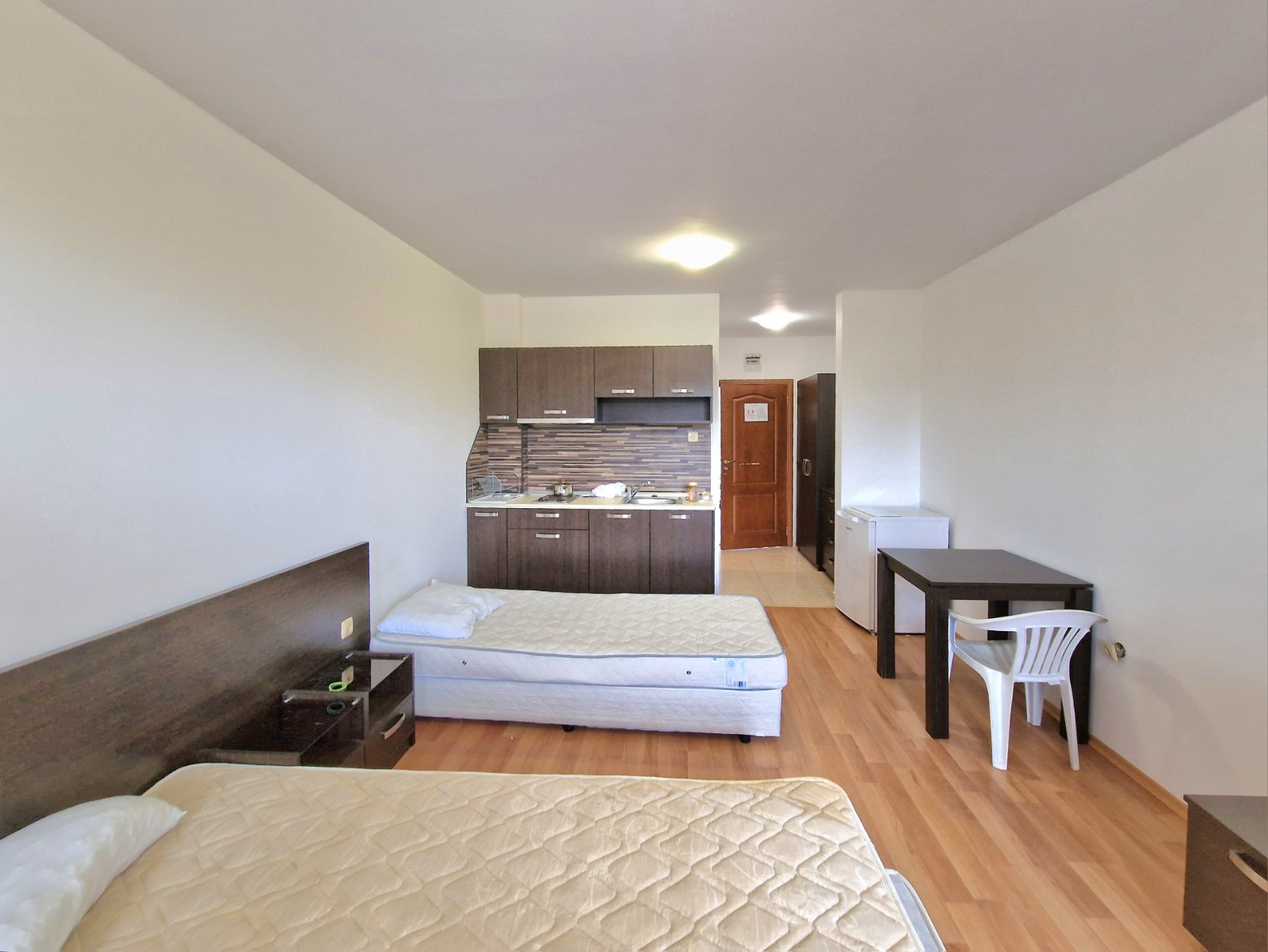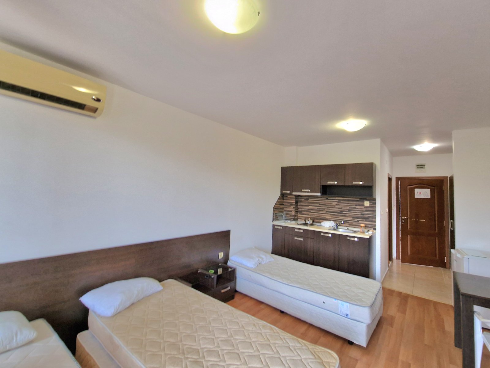 Предлагаем на продажу просторную студию с террасой в закрытом комплексе на Солнечном Берегу.