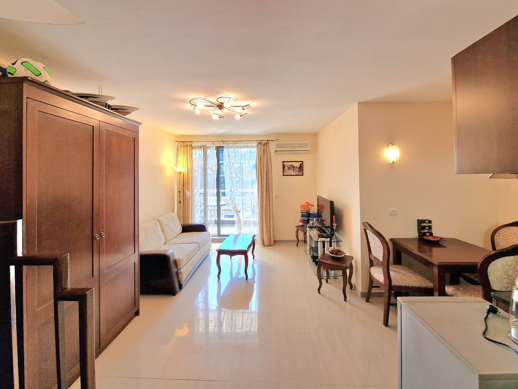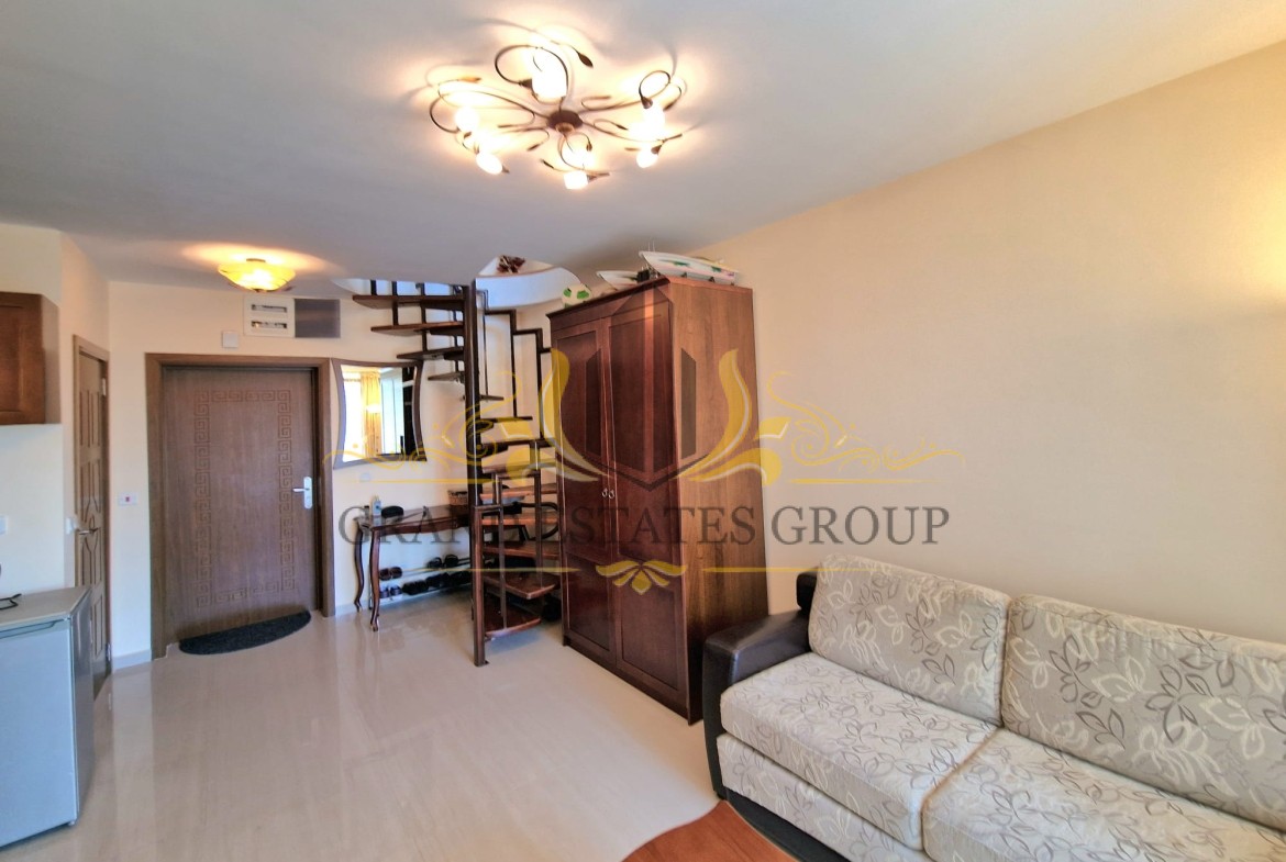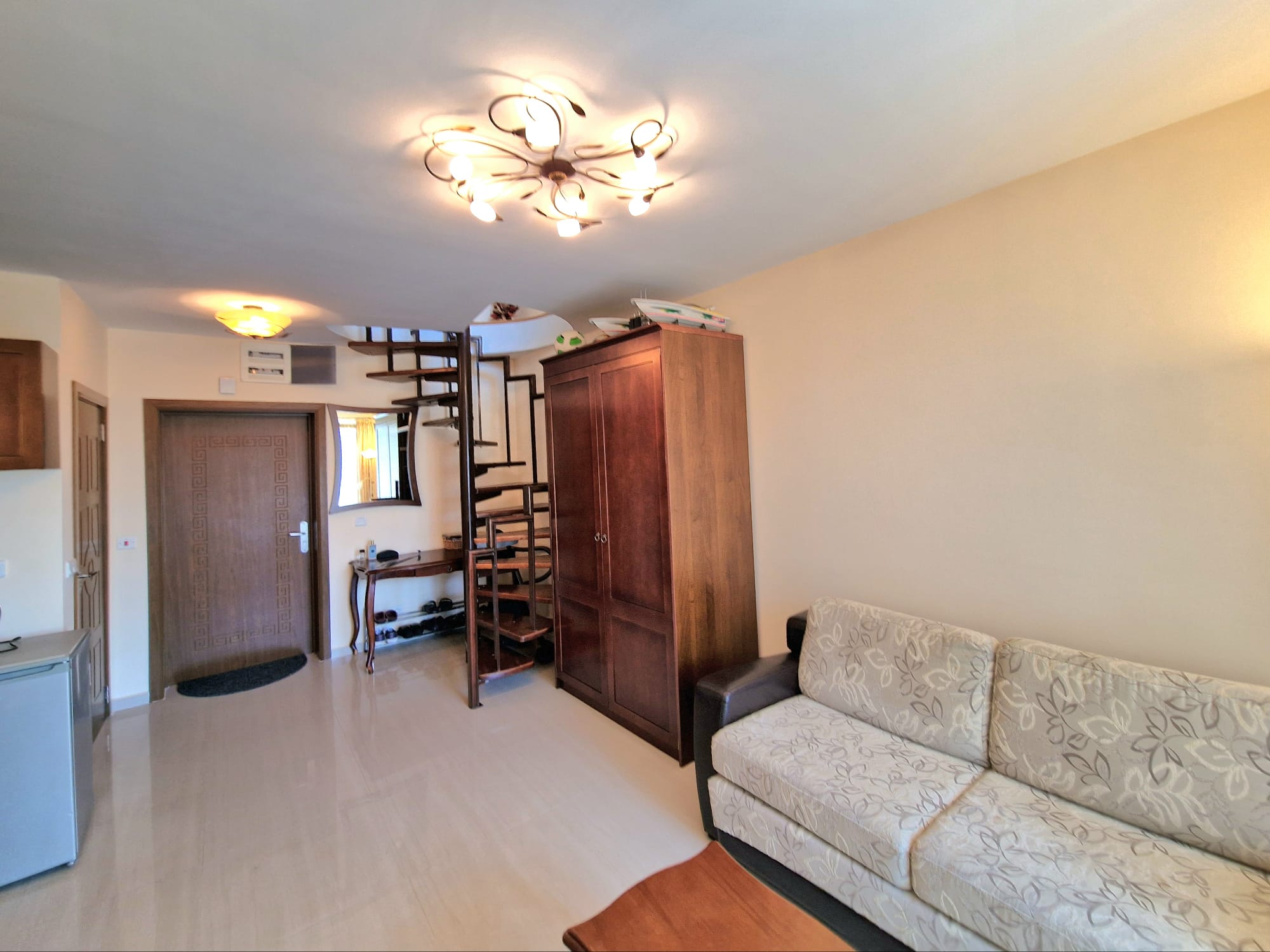 Предлагаем на продажу мезонет с одной спальней в комплексе ”Мида” на курорте Солнечный берег в жилом районе Чайка.