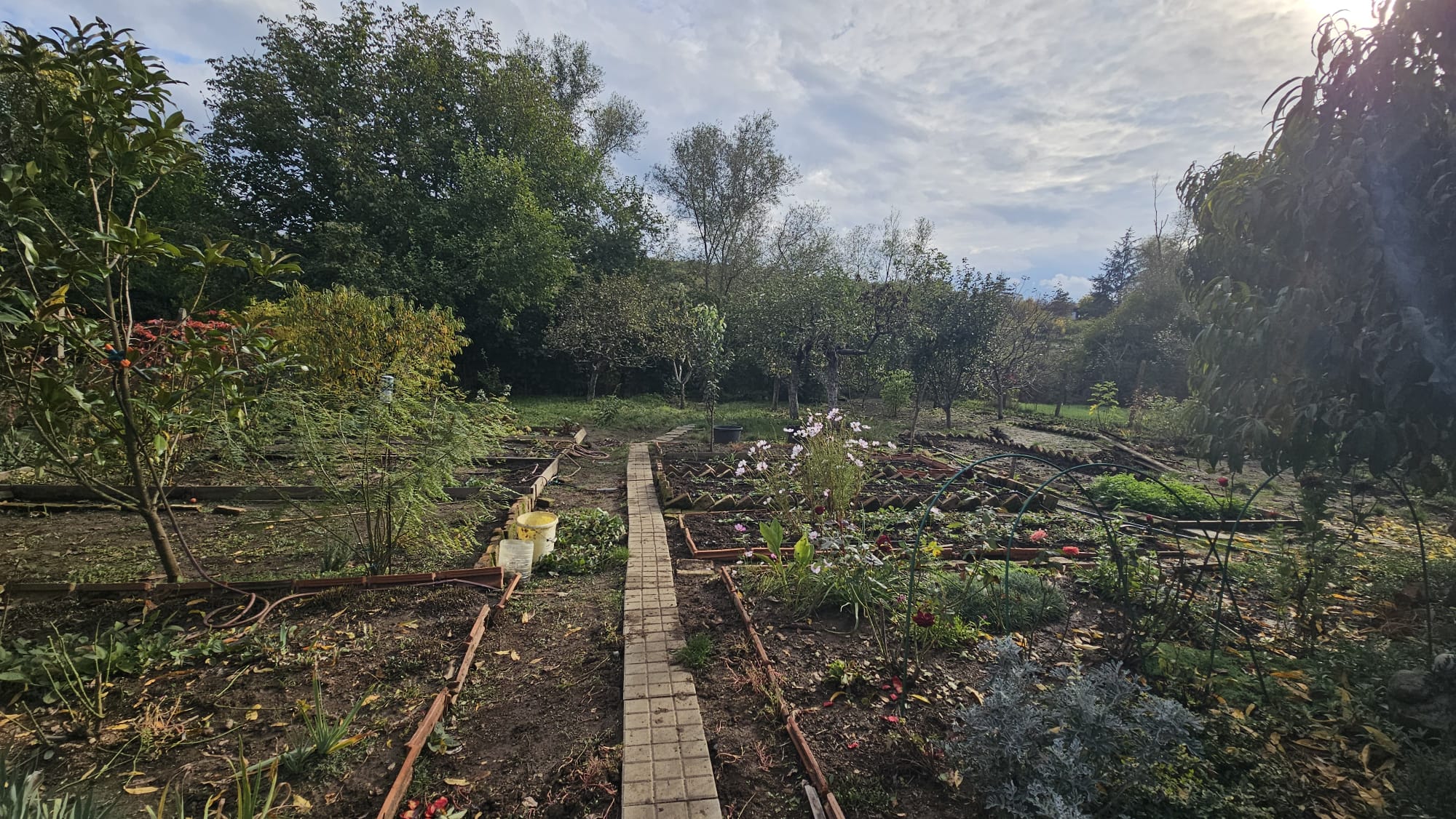 Участок большой и ухоженный, с множеством плодовых деревьев и декоративных насаждений.
