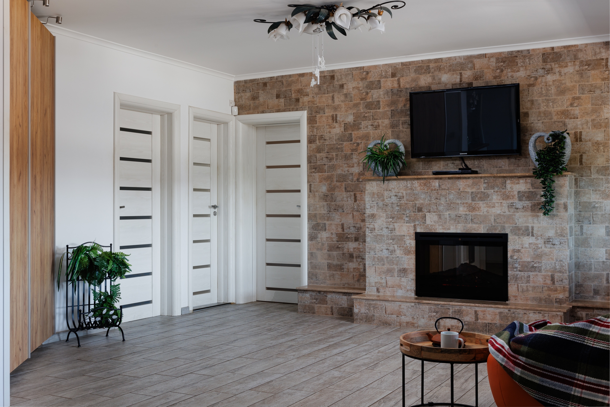 Дом площадью 163 кв.м, имеет два входа и состоит из 2х прихожей, котельная, гостиной с отдедьной кухонной зоной, 2х спален, 2х ванных комнат.