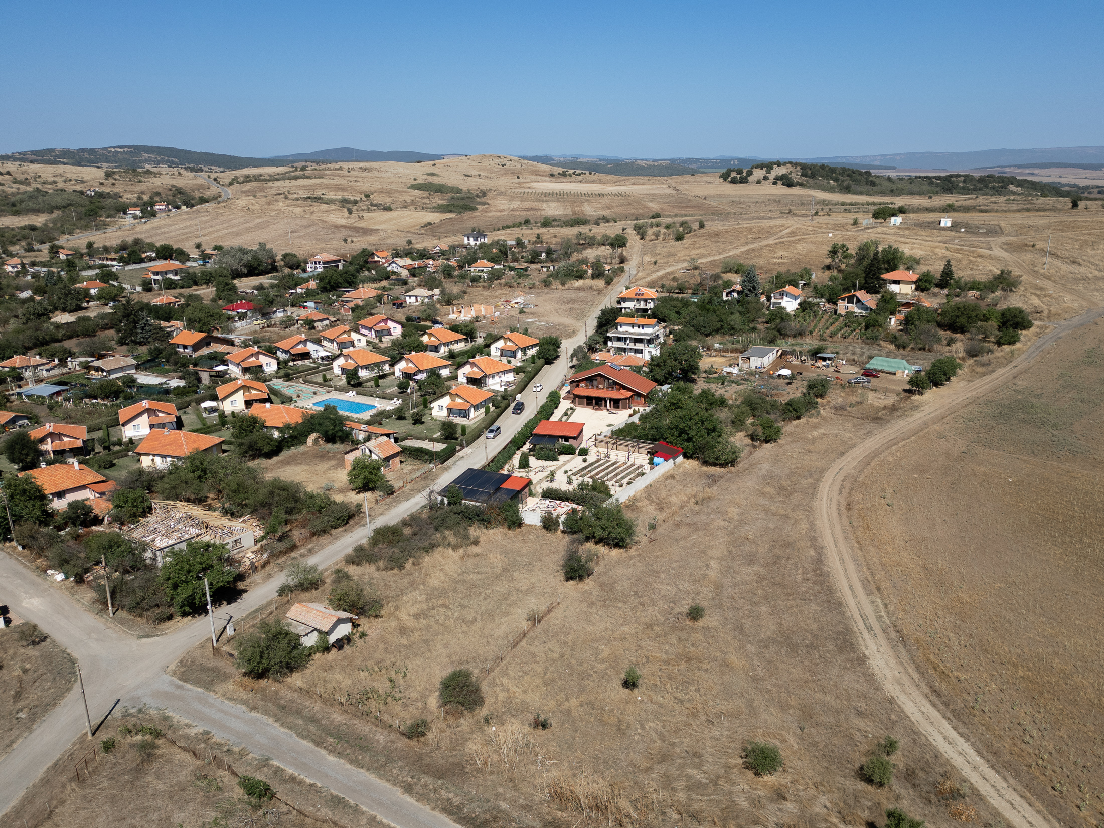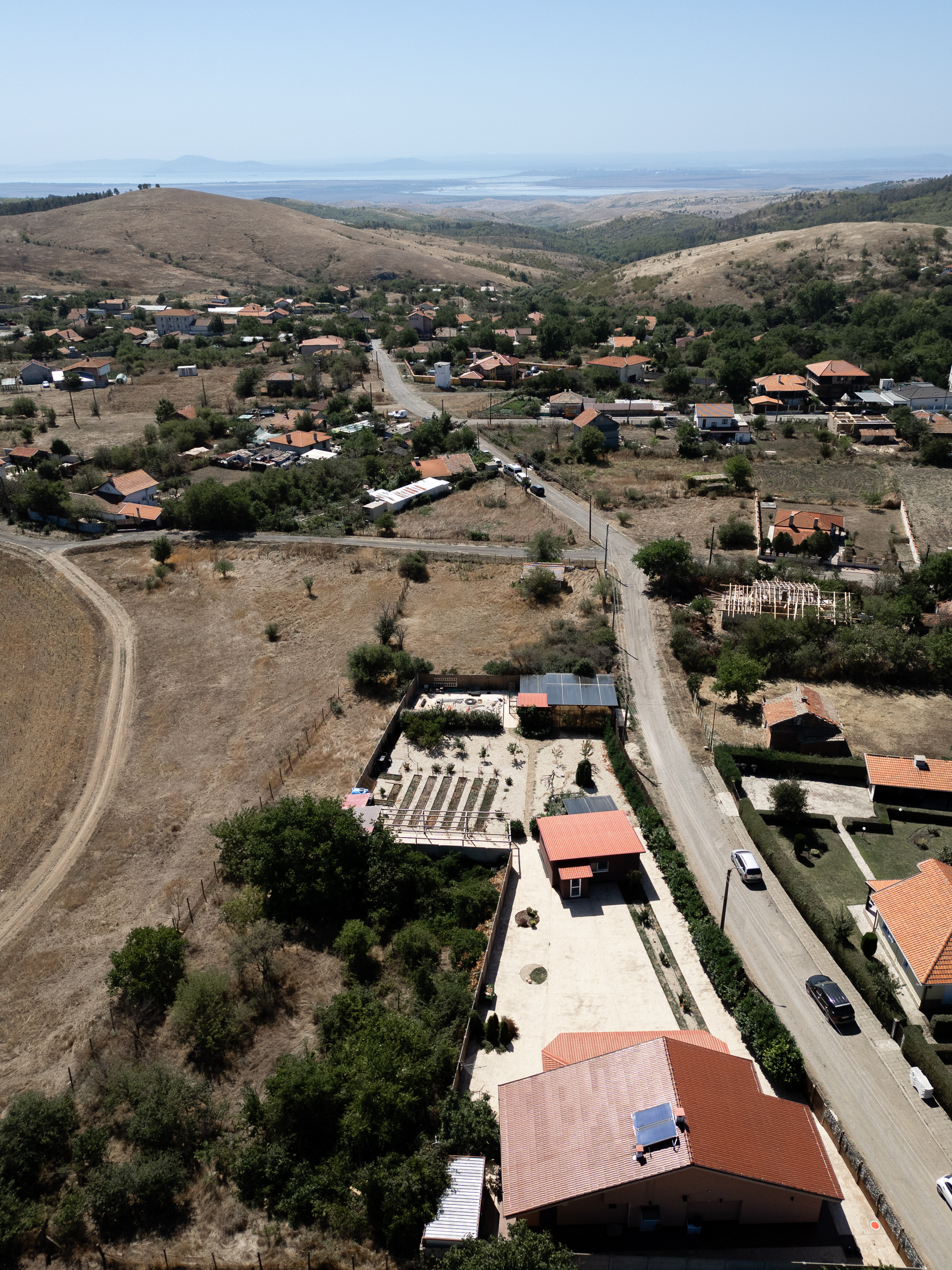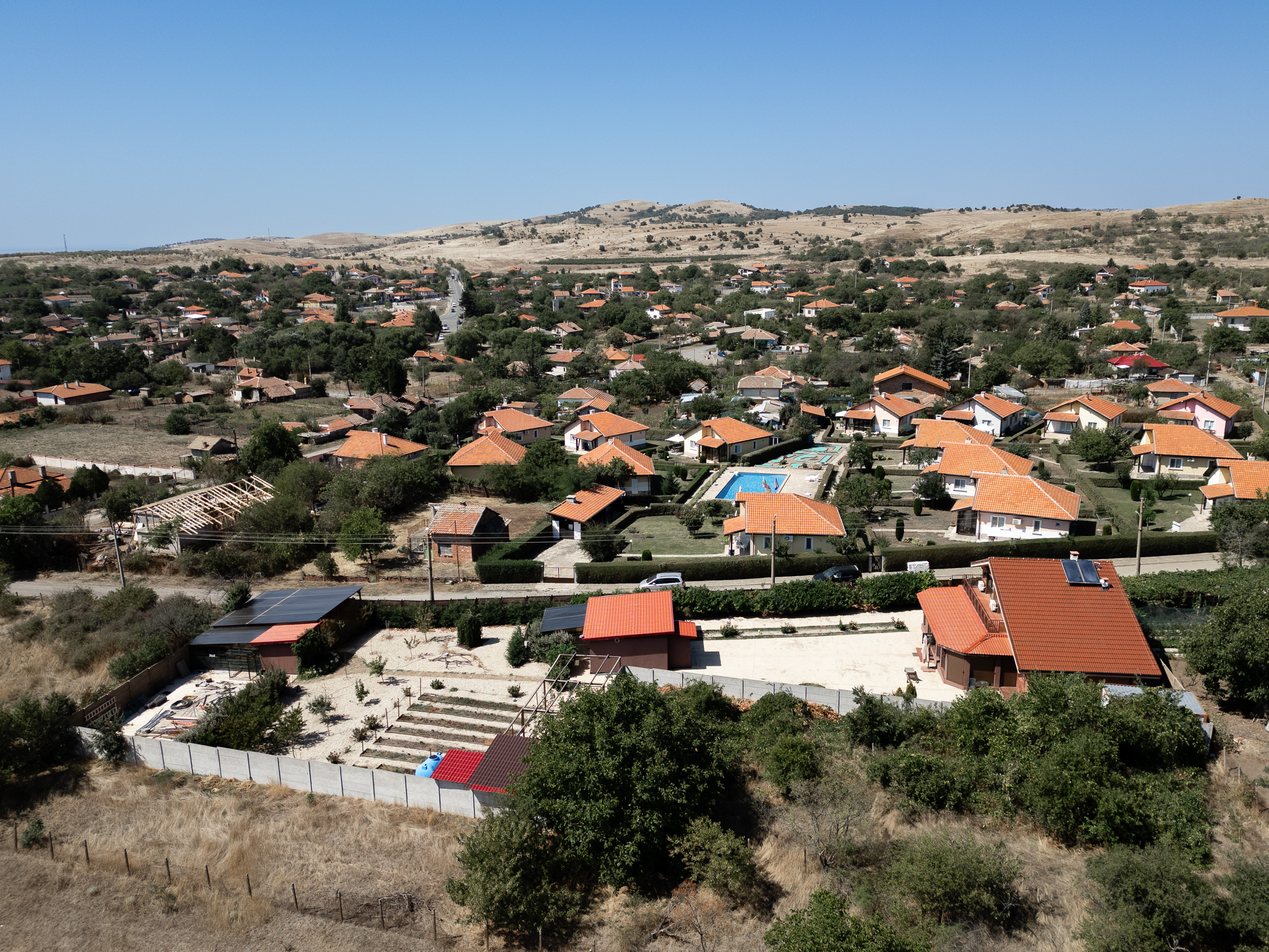 На участке, площадью 900 кв.м. есть барбекю, гараж и мастерская, огород и фруктовый сад. Есть возможность построить бассейн во дворе.