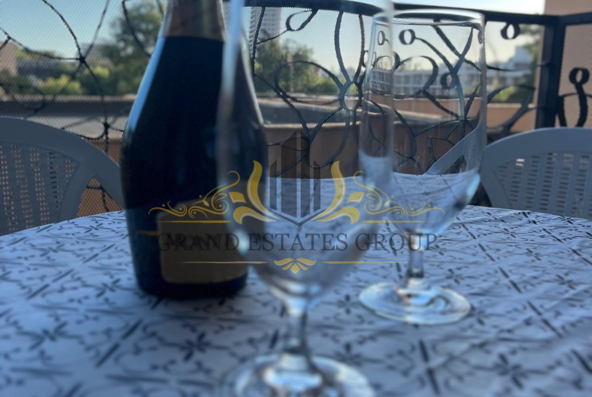 Квартира в отличном состоянии, меблирована и оборудована, готова к заселению. Планировка включает гостиную, совмещенную с кухней, светлую спальню, ванную комнату с туалетом и ванной, а также террасу с видом на город.