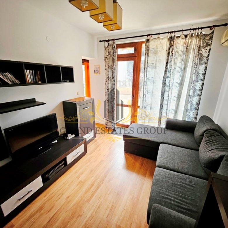 Состоит из прихожей, гостиной с кухонной зоной (имеется вся бытовая техника), просторной спални, ванной комнаты с туалетом и террасы с видом на бассейн и зеленый двор комплекса. Установлены кондиционеры в каждой комнате. Западное изложение.