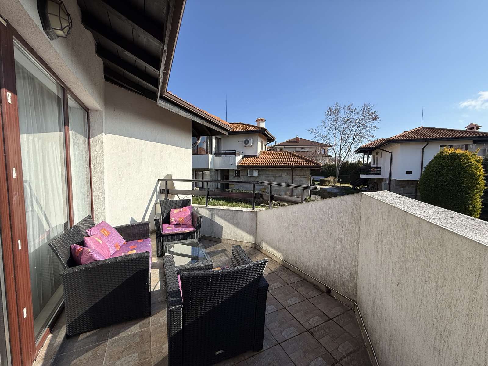 Предлагаем на продажу просторную двухкомнатную квартиру в комплексе Bay View Villas, в поселке Кошарица, в 2 км от Солнечного Берега и моря.