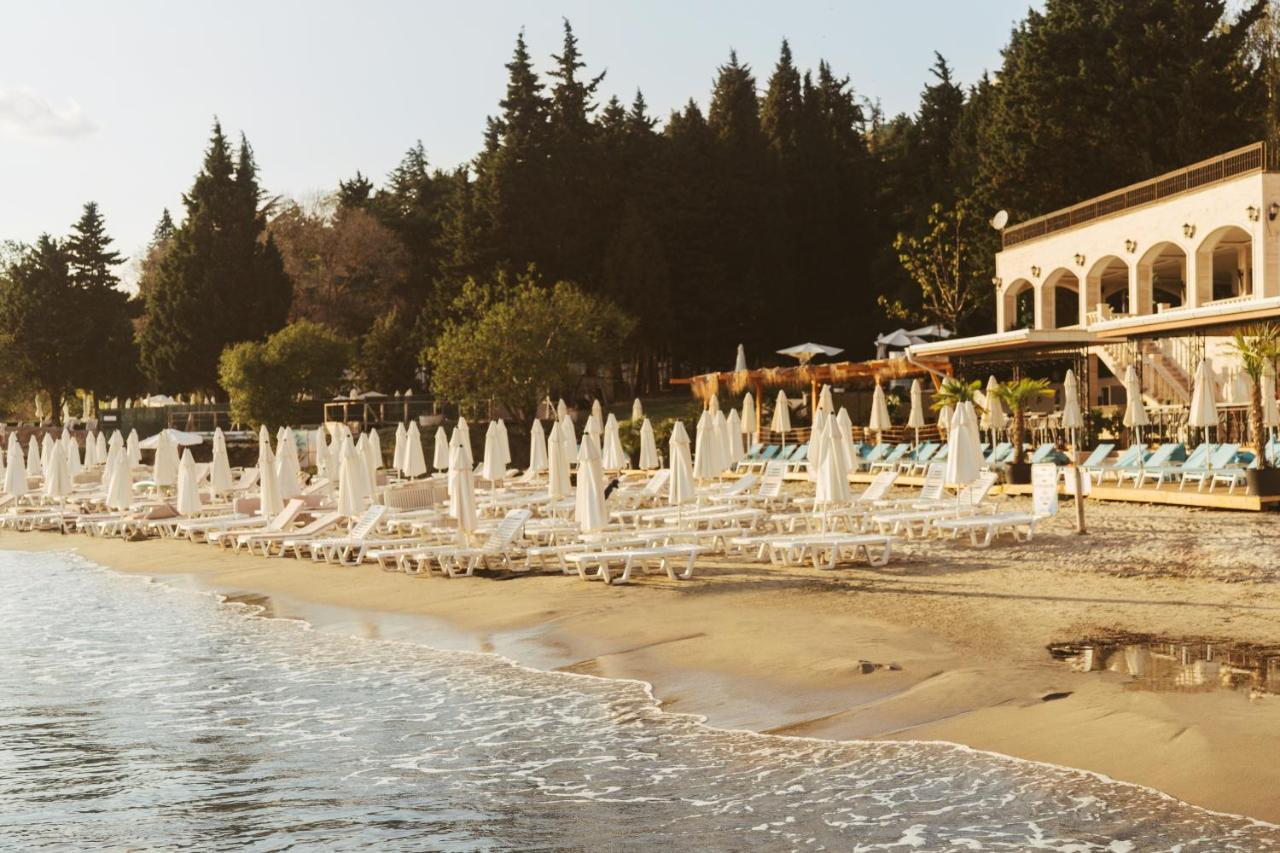 На территории комплекса есть открытый бассейн с баром, из которого открывается потрясающий вид на море и пляж. Для детей есть детский бассейн и детская площадка.
