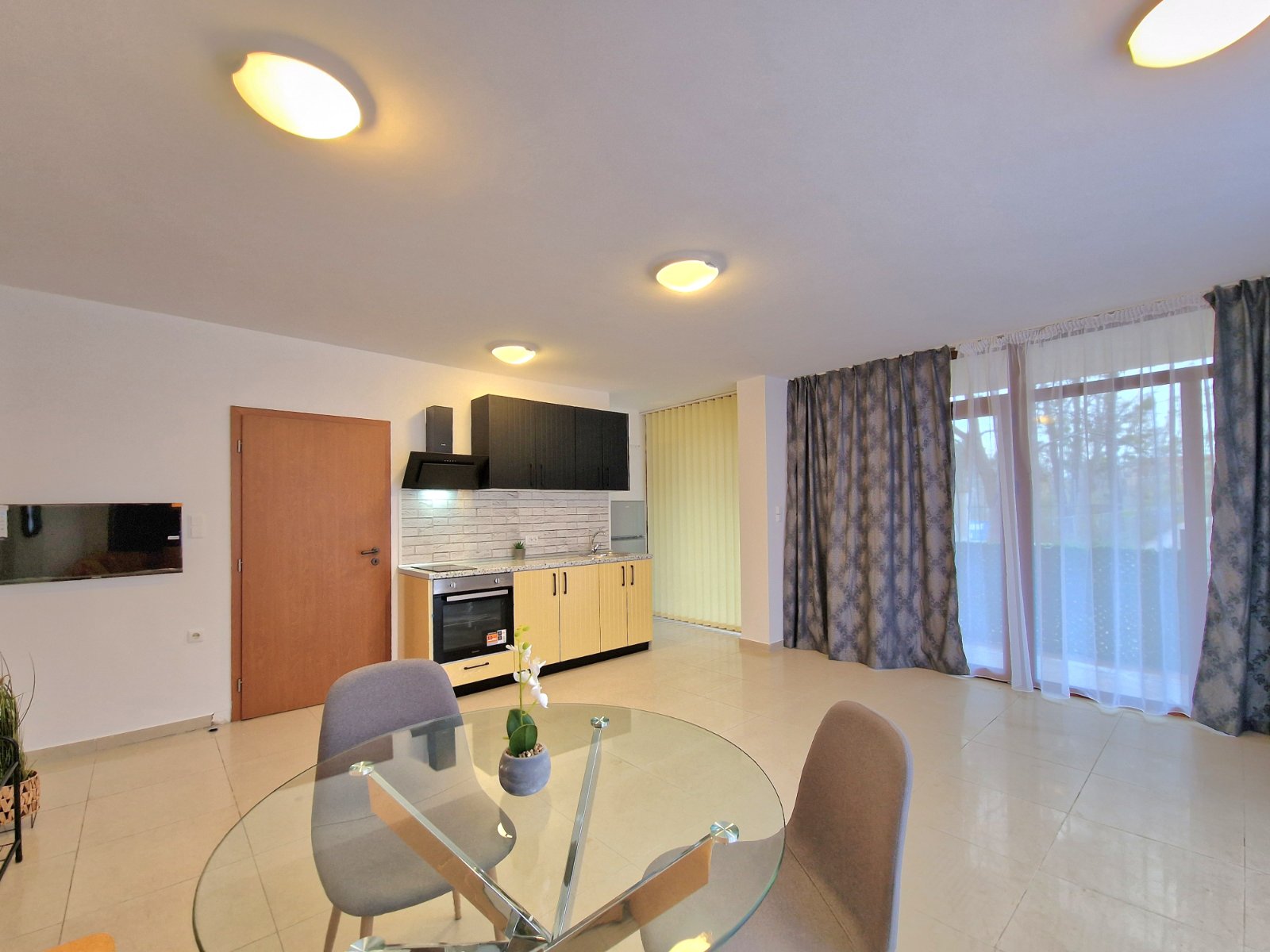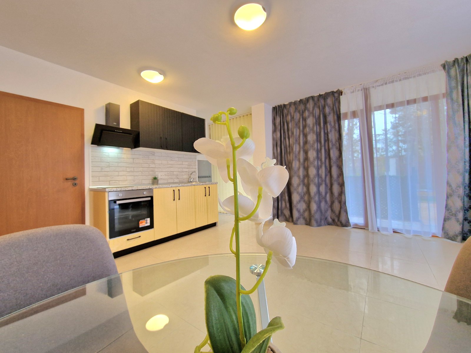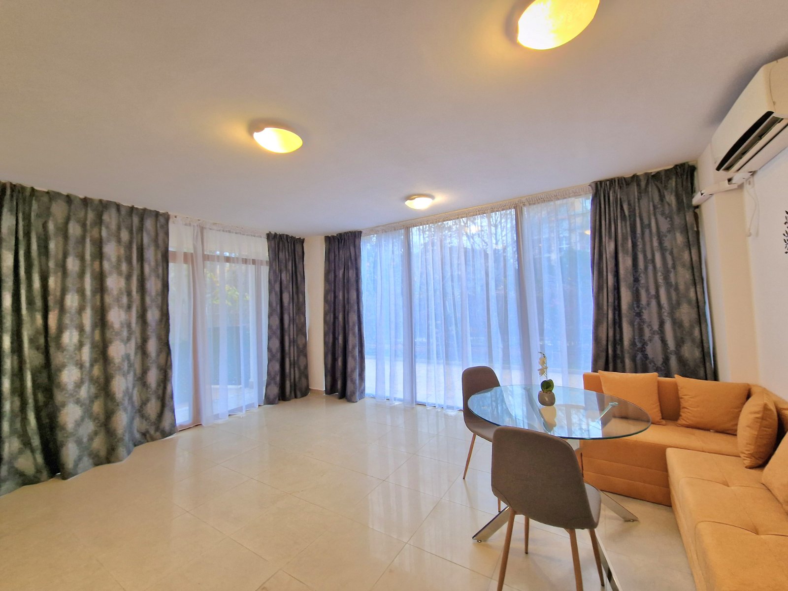 Предлагаем вашему вниманию отличную двухкомнатную квартиру в прекрасном комплексе на Солнечном Берегу. Квартира расположена в центральной части курорта, рядом со всей инфраструктурой, всего в 400 метрах от пляжа. Территория ухоженная, есть бассейн, джакузи, бар, ресторан, детская площадка, зеленые насаждения, круглосуточная охрана, видеонаблюдение, чип-система. Квартира расположена на первом этаже с прекрасной террасой и выходом. Состоит из просторной гостиной, спальни, ванной комнаты и туалета, обставлена новой мебелью и техникой. Прекрасный объект недвижимости, подходящий как для круглогодичного проживания, так и для незабываемого летнего отдыха. Акт 16.