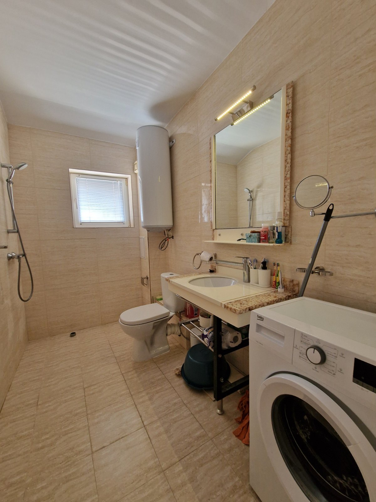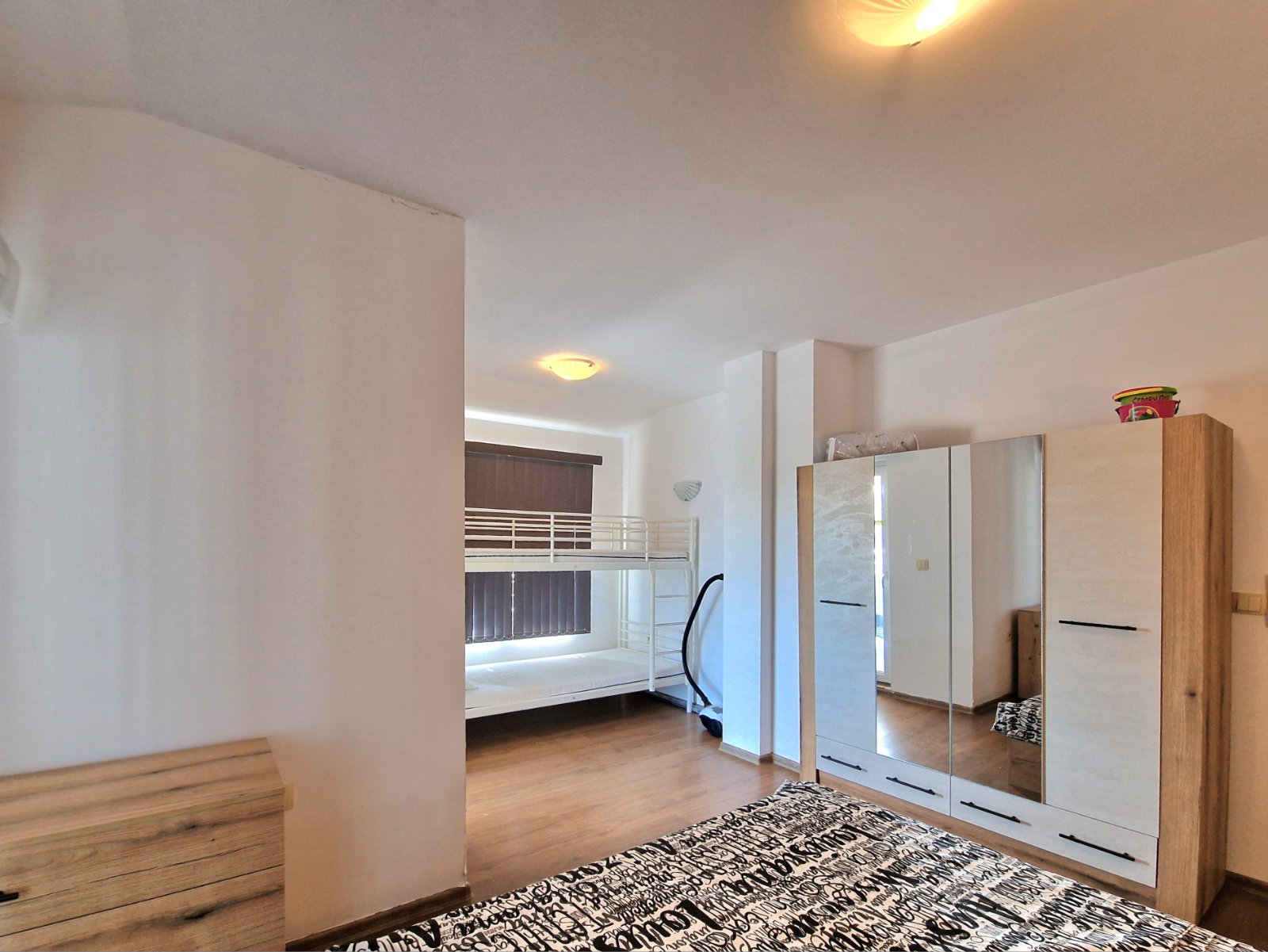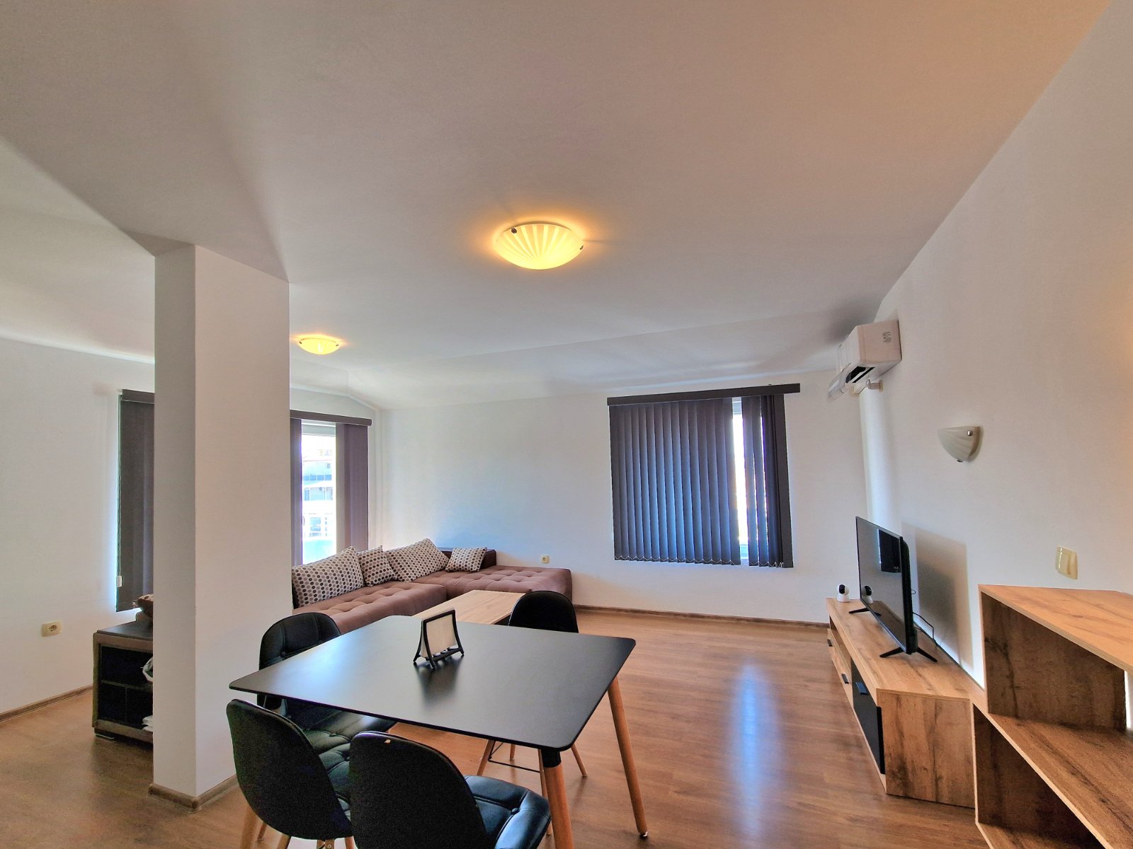 Все расположенные вокруг комплексы с бассейнами и удобствами для круглогодичного проживания и летнего отдыха создают прекрасный, гармоничный район. Рядом с комплексом находится большой круглогодичный супермаркет ”Младость”. Комплекс монолитный, без гипсокартона, с бассейном, детской площадкой, крытой парковкой, богатым озеленением и особым шармом. Общая площадь квартиры составляет 116 квадратных метров, она расположена на шестом этаже с лифтом. В квартире просторная гостиная с кухней и обеденной зоной, спальня, ванная комната с душем и туалетом. С трёх сторон квартиру окружает просторная терраса, которая станет любимым местом отдыха вашей семьи. Квартира обставлена современной новой мебелью и техникой и продаётся со всем оборудованием и техникой: двумя новыми энергосберегающими кондиционерами, большим холодильником, современной кухонной плитой, стиральной машиной и всей техникой, как на фотографиях, в отличном состоянии. Стоимость обслуживания составляет 6 евро за кв.м. в год. Квартиры в этом районе пользуются большим спросом в аренду в период активного туристического сезона.