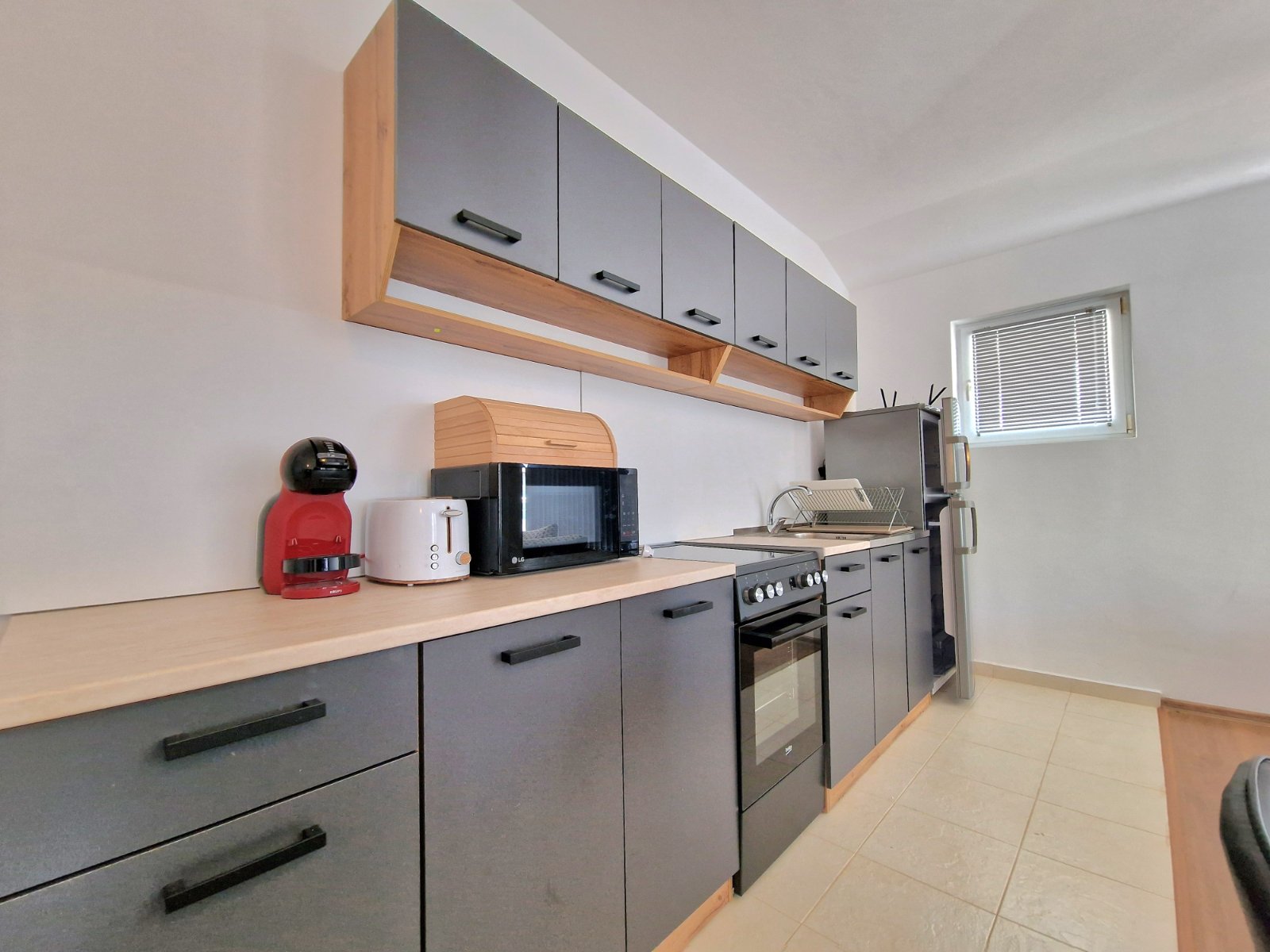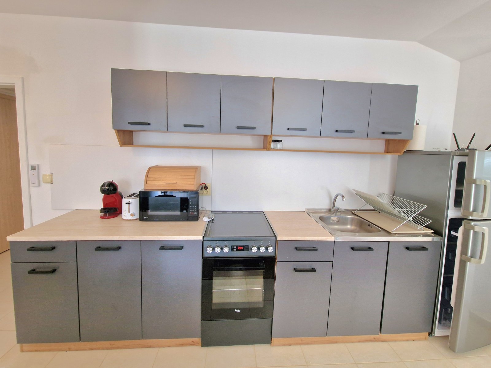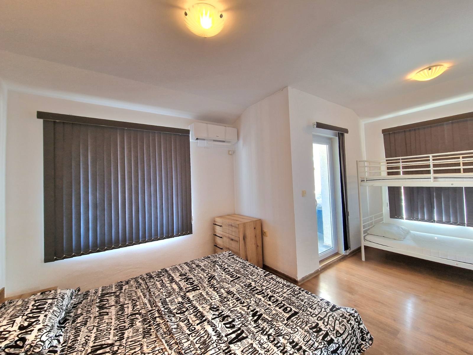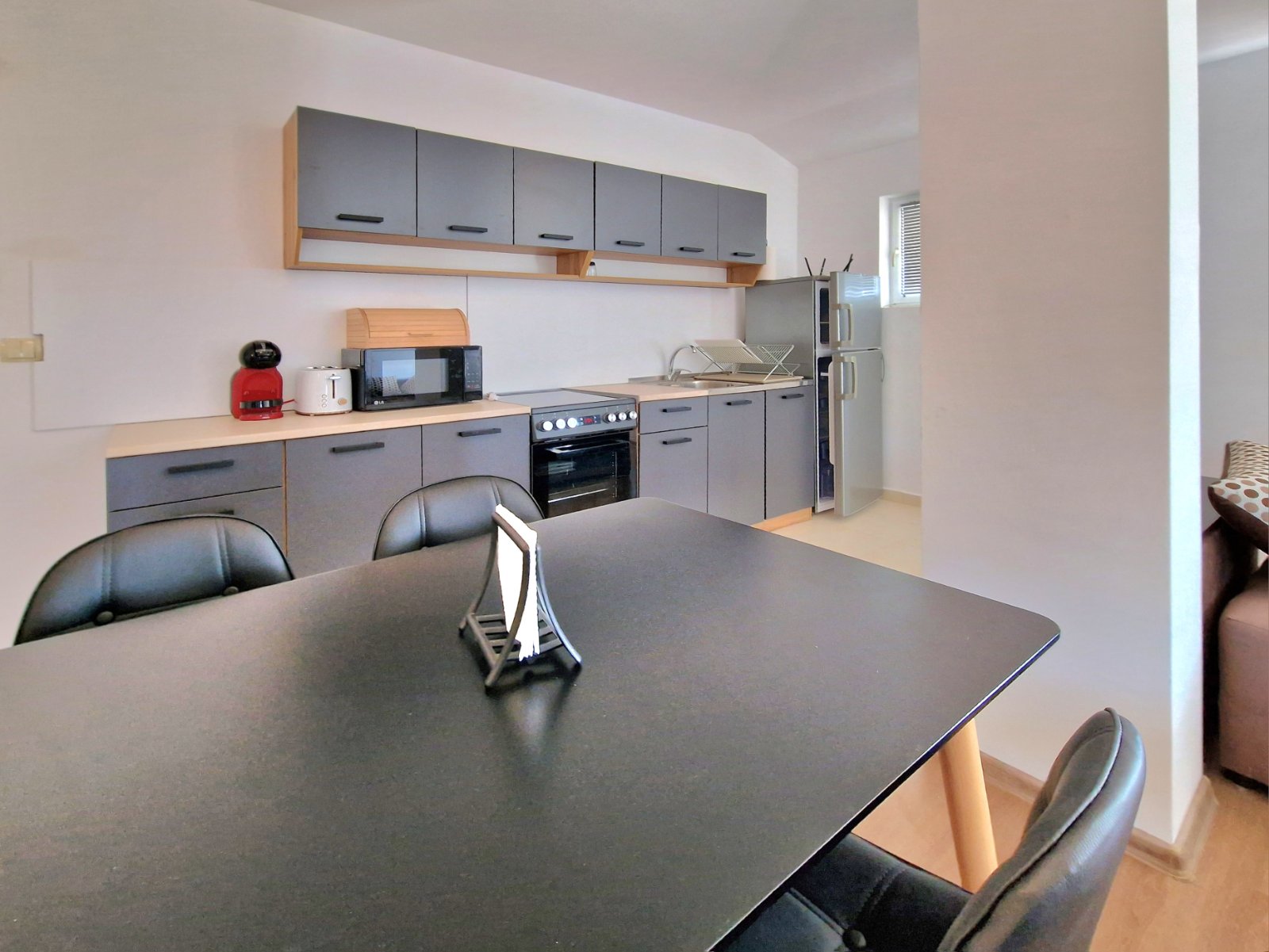 Все расположенные вокруг комплексы с бассейнами и удобствами для круглогодичного проживания и летнего отдыха создают прекрасный, гармоничный район. Рядом с комплексом находится большой круглогодичный супермаркет ”Младость”. Комплекс монолитный, без гипсокартона, с бассейном, детской площадкой, крытой парковкой, богатым озеленением и особым шармом. Общая площадь квартиры составляет 116 квадратных метров, она расположена на шестом этаже с лифтом. В квартире просторная гостиная с кухней и обеденной зоной, спальня, ванная комната с душем и туалетом. С трёх сторон квартиру окружает просторная терраса, которая станет любимым местом отдыха вашей семьи. Квартира обставлена современной новой мебелью и техникой и продаётся со всем оборудованием и техникой: двумя новыми энергосберегающими кондиционерами, большим холодильником, современной кухонной плитой, стиральной машиной и всей техникой, как на фотографиях, в отличном состоянии. Стоимость обслуживания составляет 6 евро за кв.м. в год. Квартиры в этом районе пользуются большим спросом в аренду в период активного туристического сезона.