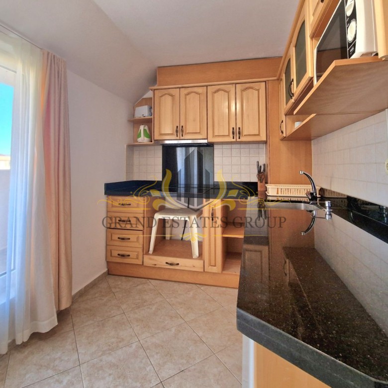 Прекрасная, просторная и полностью меблированная студия продается в закрытом комплексе в Солнечном Берегу. Расположена на первом этаже с видом на бассейн. Квартира предлагается полностью меблированной и оборудованной, плюс собственный подвал. Общая площадь – 48,62 кв.м. + 3,40 кв.м. подвал. Наружные жалюзи на окнах обеспечивают тень и приватность. Комплекс находится в непосредственной близости от пляжа Какао, известного своим широким песчаным пляжем, романтическими ресторанами и ночной жизнью. Также имеется большой бассейн, подходящий не только для взрослых, но и для детей.