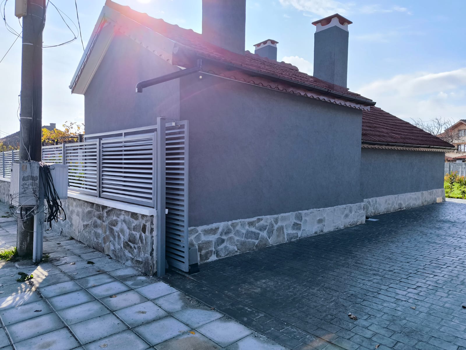 При реконструкции использованы самые современные и высококачественные строительные и отделочные материалы, всё оборудование в доме новое. Для любителей камина, сохранена, подвергнута полной ревизии и очистке оригинальная система дымохода (в настоящий момент может иметь декоративную функцию для отопления не требуется). С помощью современных технологий и материалов дом утеплен по всему периметру. В доме оборудована система «тёплый пол», кроме того установлены инверторные климатические системы Cooper&Hunter, максимально эффективные и экономные как на обогрев, так и на охлаждение. В настоящий момент в с. Гюлёвца, силами общины Несебр, заканчивается ремонт водопроводной сети с полной заменой всех коммуникаций, после чего будет полностью заменено дорожное покрытие.