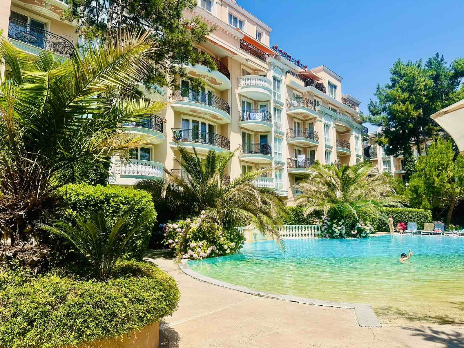 Предлагаем на продажу двухкомнатную квартиру и паркоместо в комплексе Люкс класса ”Венера Палас” на Солнечном Берегу.