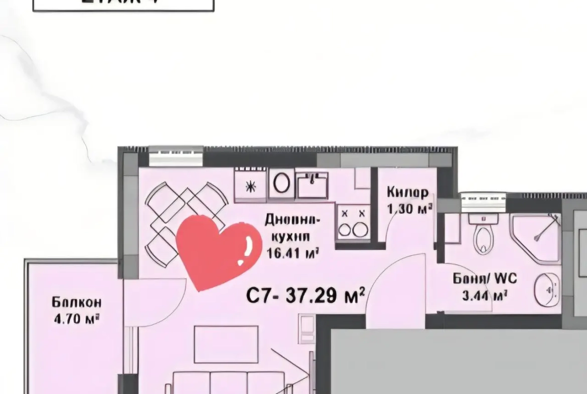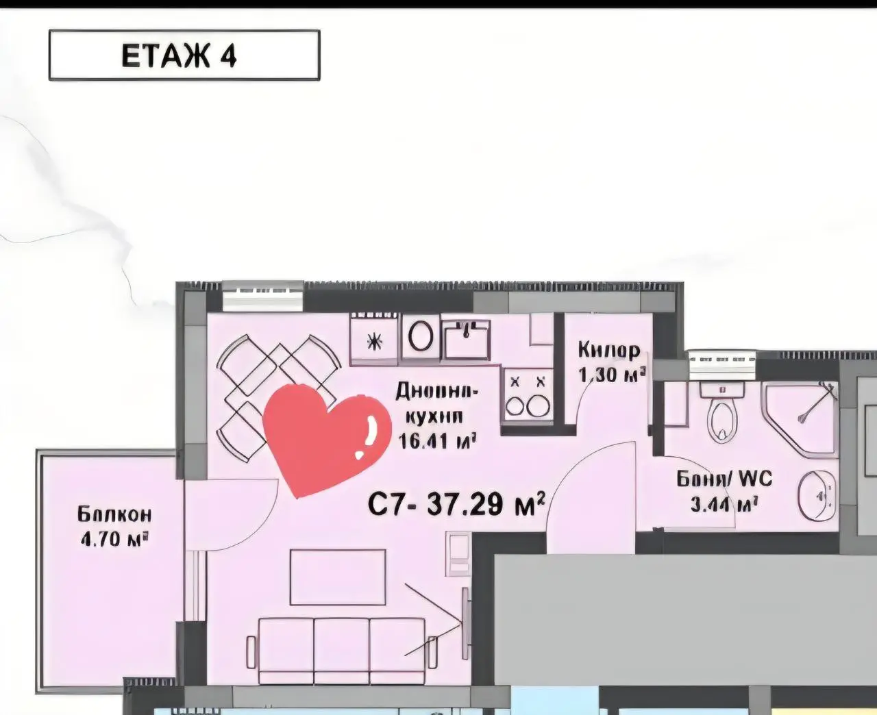 Студия площадью 37,3 расположена на 4 этаже здания с лифтом и состоит из прихожей, гостиной с зоной для кухни , ванной комнаты с туалетом и террассы с видом на город. Квартиры предлагается с ремонтом, без мебели.