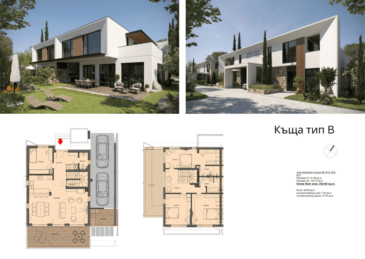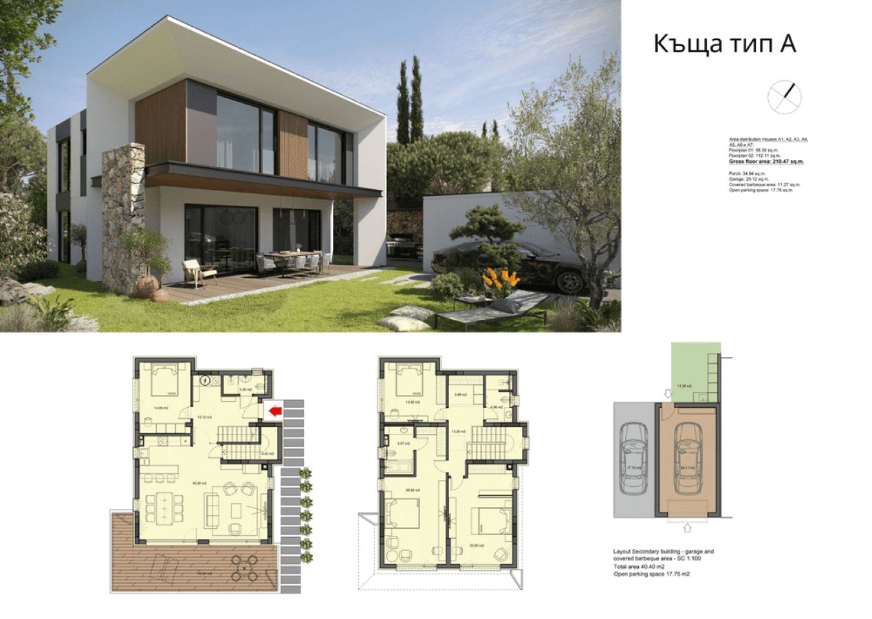 Также предлагаются двухэтажные самостоятельный дома с 4мя спальнями, площадью 210 кв.м., с участком, закрытым гаражом и паркингом. Стоимость домов в черновой отделки 449 900 евро, ”под ключ” – 499 900 евро