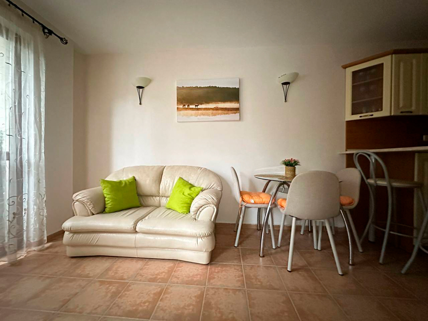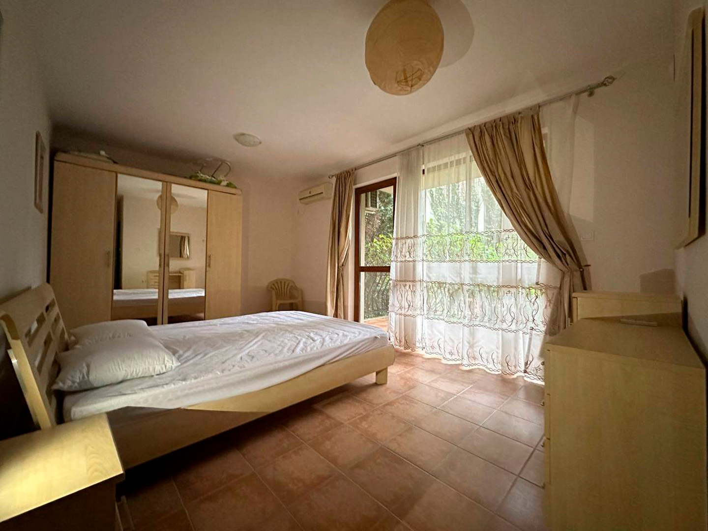 Трехкомнатная квартира общей площадью 99 кв. м. расположена на 1-м партерном этаже , что весьма привлекательно для семей с маленькими детками. Квартира готова для постоянного проживания: современная мебель, полный комплект необходимой бытовой техники; два санузла — удобно для большой семьи или гостей; две террасы с видом на бассейн и зеленую территорию комплекса.