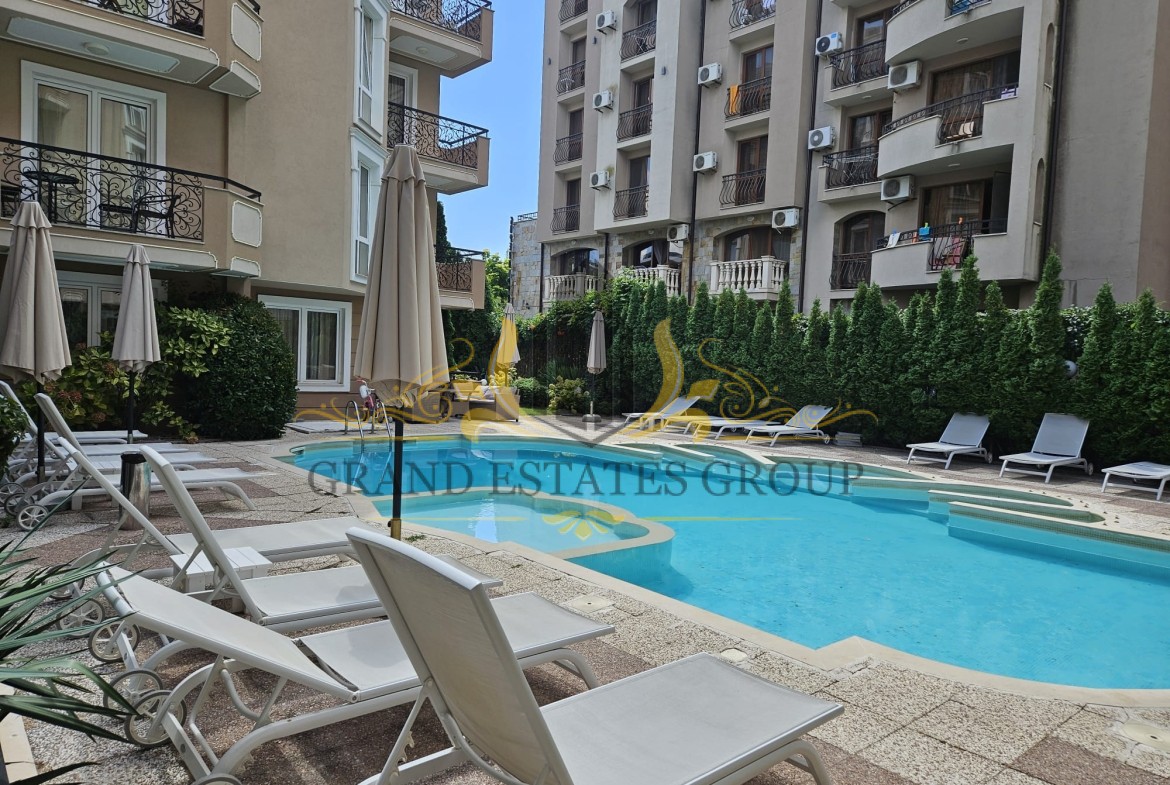 Архитектура и дизайн этого комплекса подобны дворцу. Он расположен на морском курорте Солнечный берег, всего в 500 метрах от пляжа и моря.