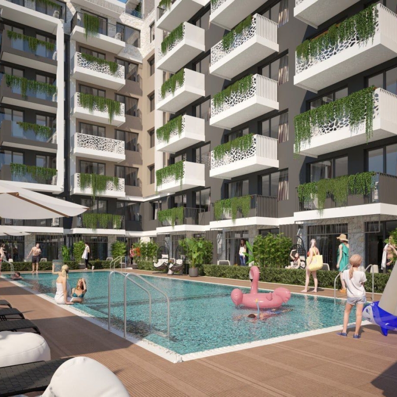 На благоустроенной территории комплекса есть бассейн с детской секцией, зона для отдыха с шезлонгами и зонтами, детская комната, ресторан, спа-центр и супермаркет. Охрана.