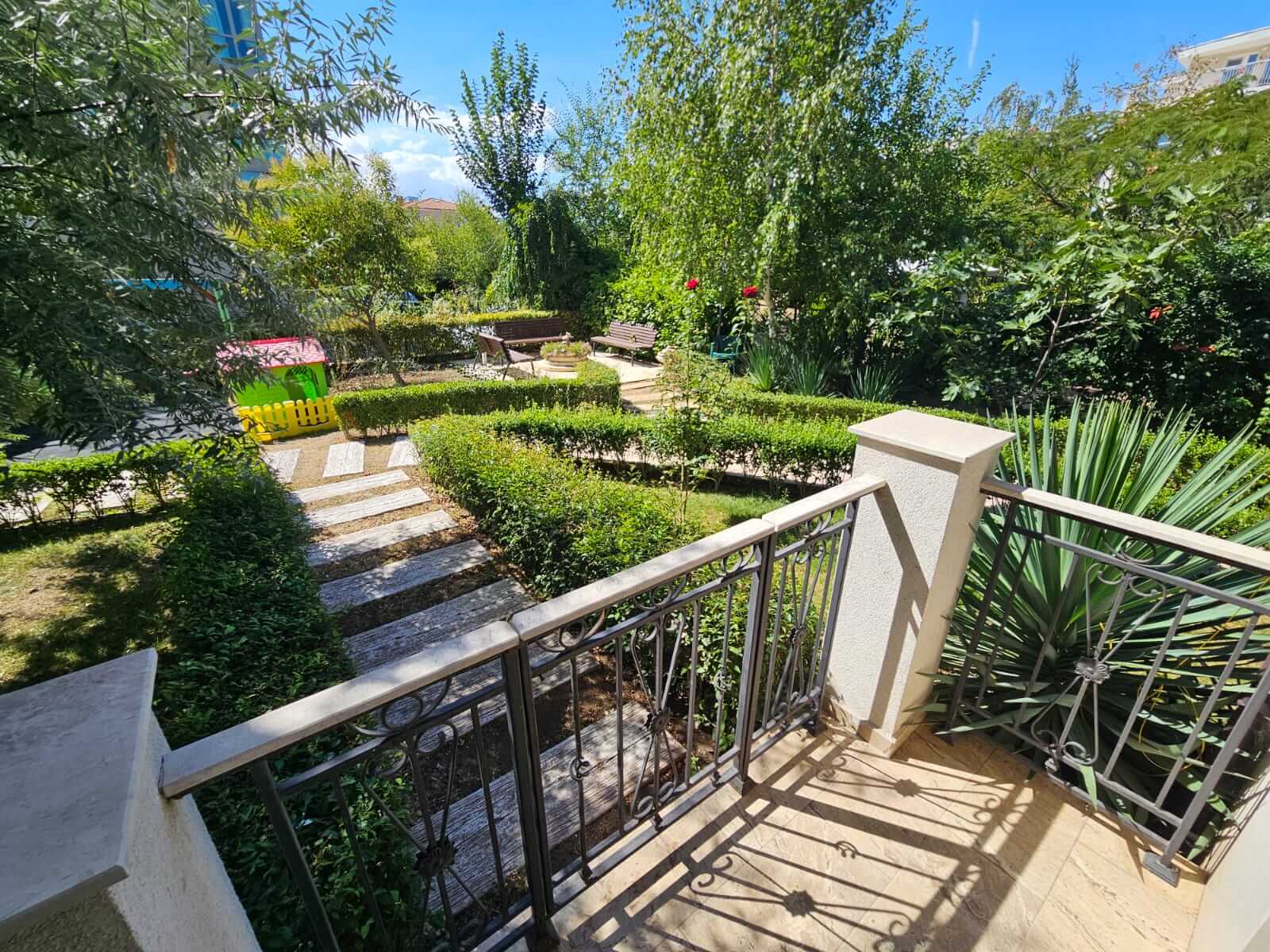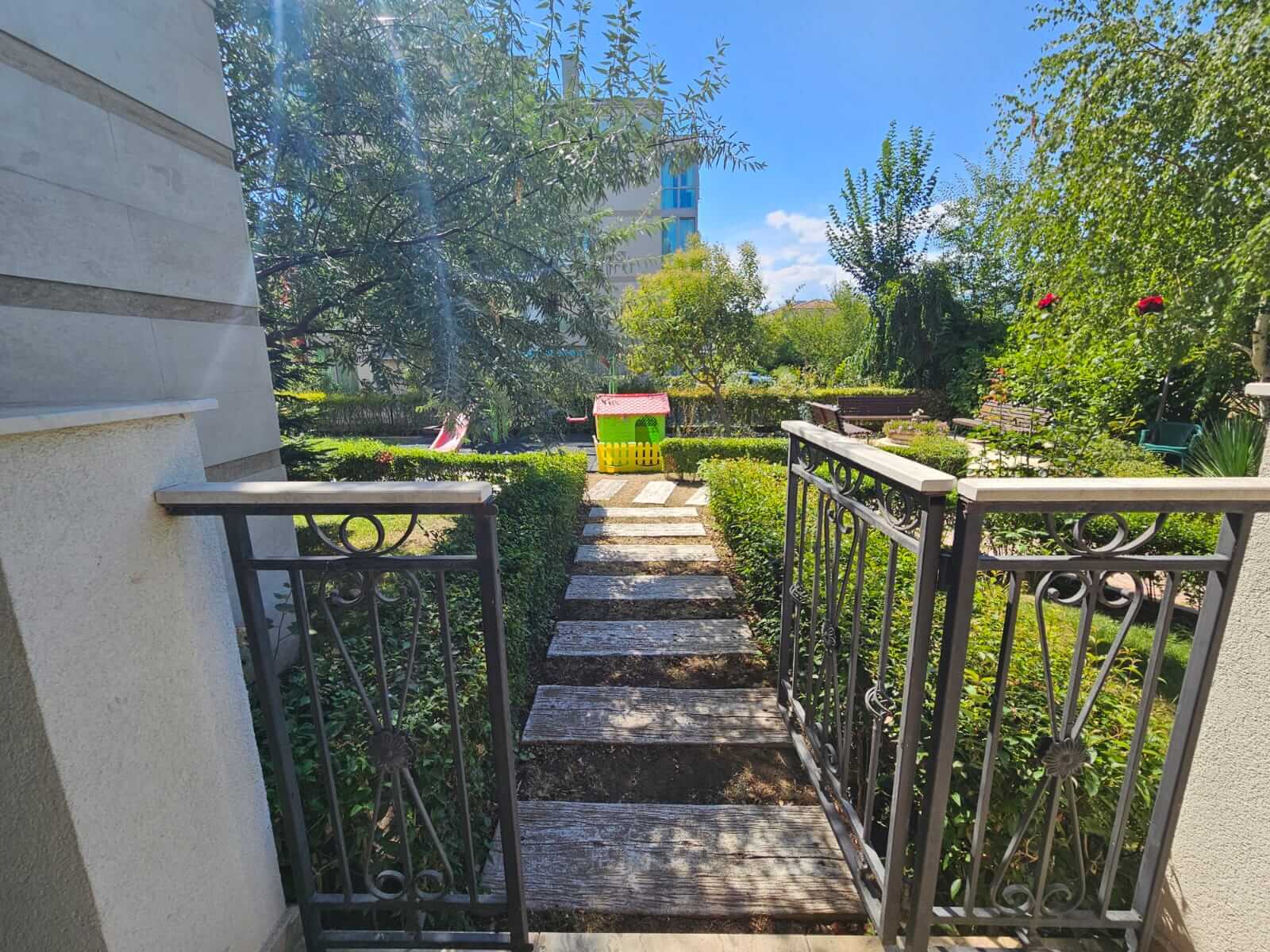 Внутренняя инфраструктура: богатое озеленение, барбекю, беседка, детская площадка, скамейки для отдыха, парковка, тихое и спокойное место с хорошо развитой инфраструктурой