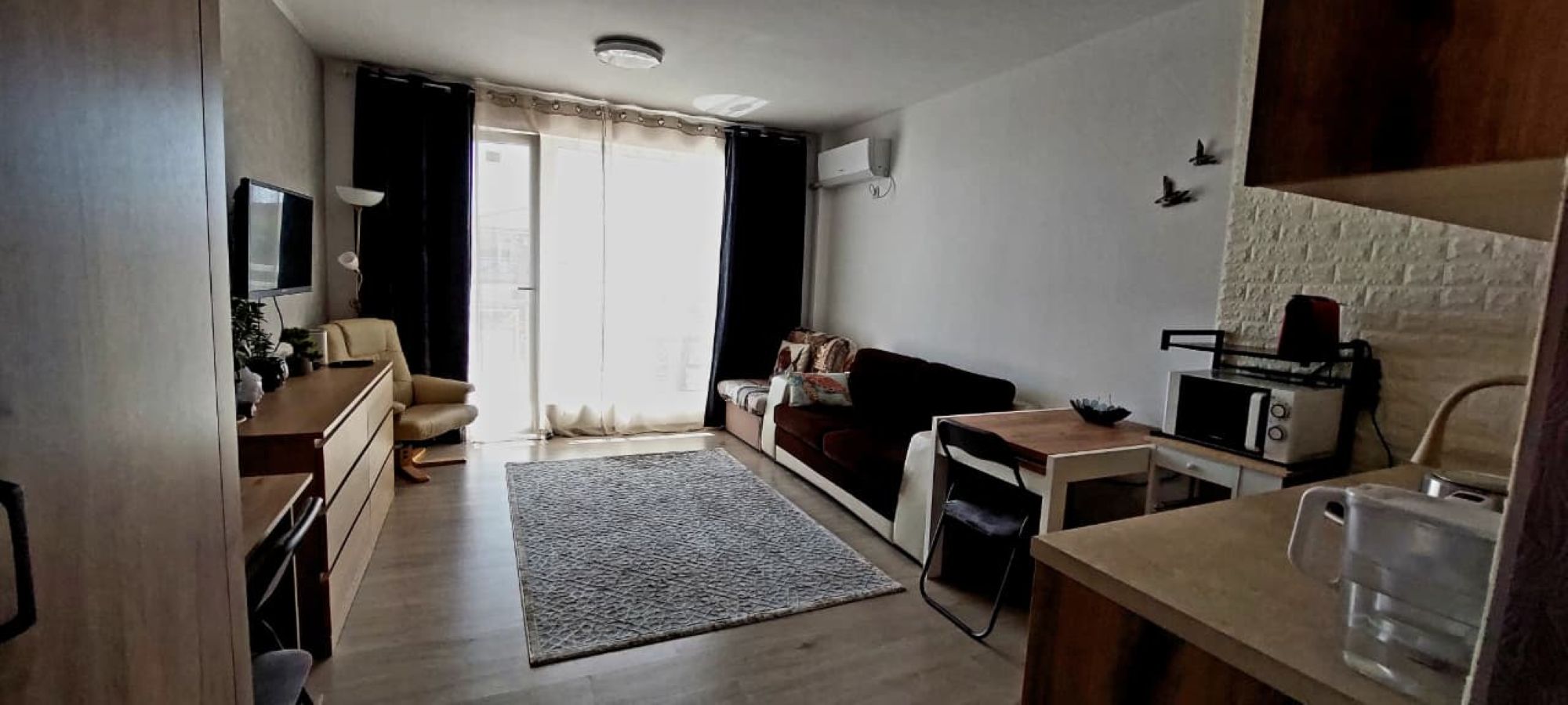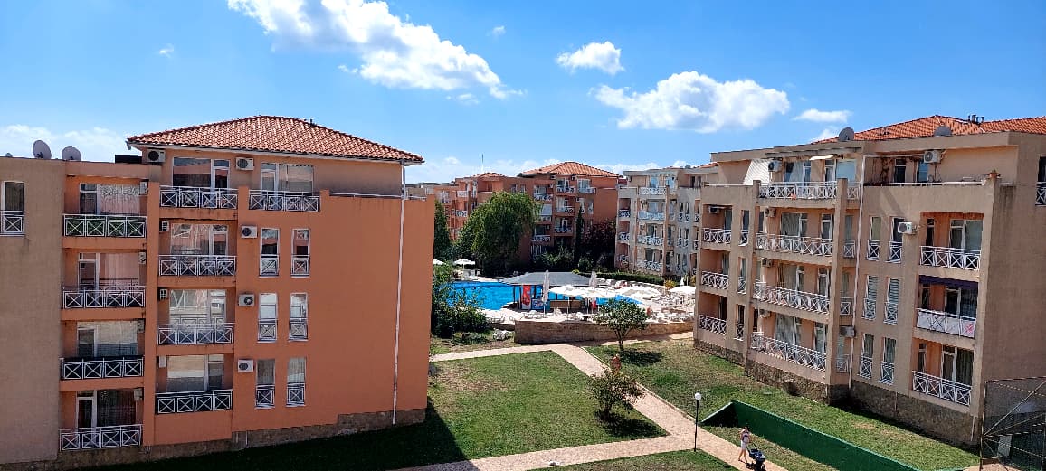 Квартира расположена в закрытом курортном комплексе, расположенном в 3 км от морского курорта Солнечный берег. Предлагается с мебелью и техникой.
