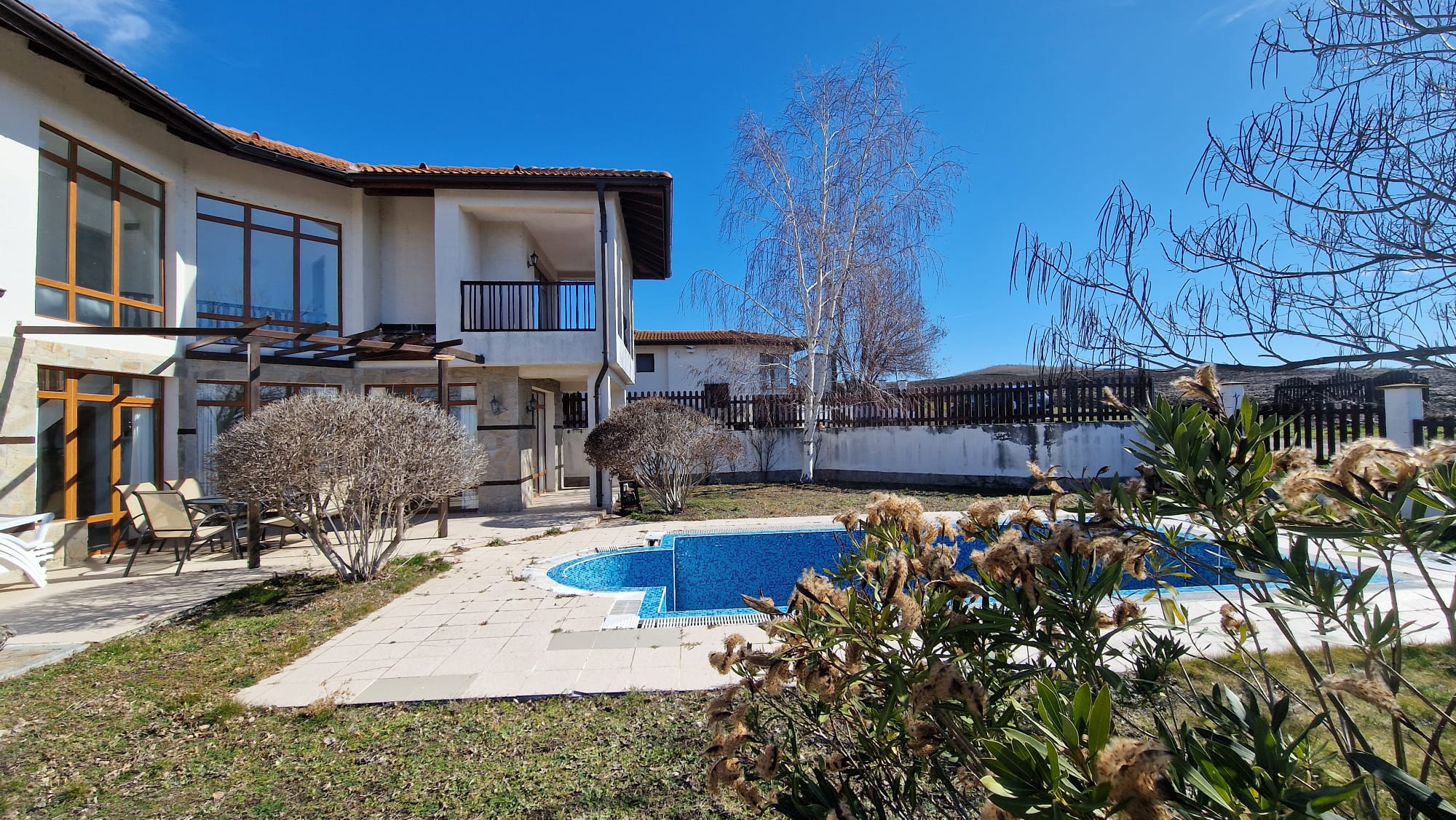 На участке — бассейн, зеленые насаждения, барбекю, места отдыха!