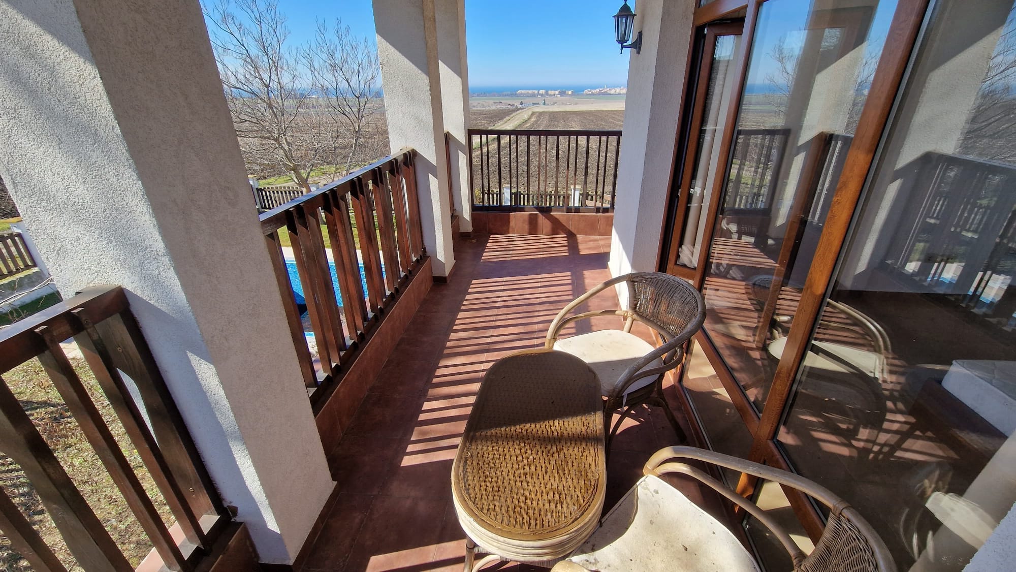 Дом общей площадью 146 кв.м. занимает два этажа с отличным видом на территорию комплекса и море.