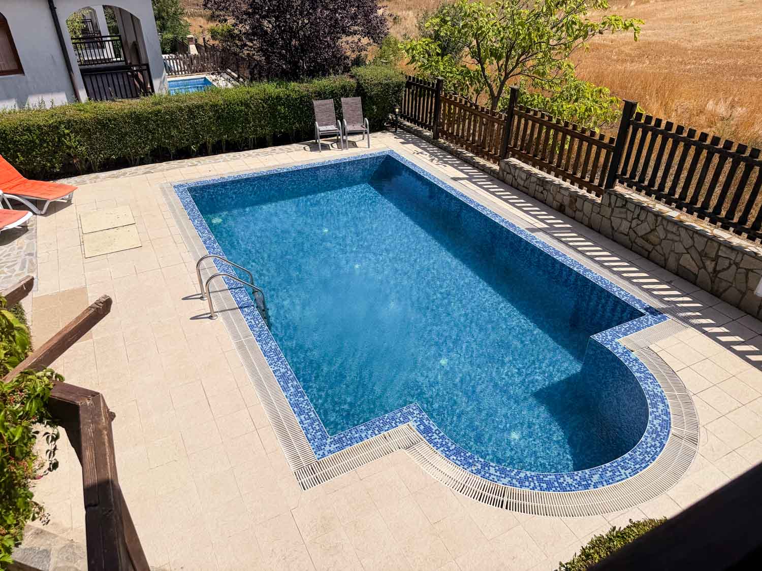 На участке — бассейн, зеленые насаждения, барбекю, места отдыха!