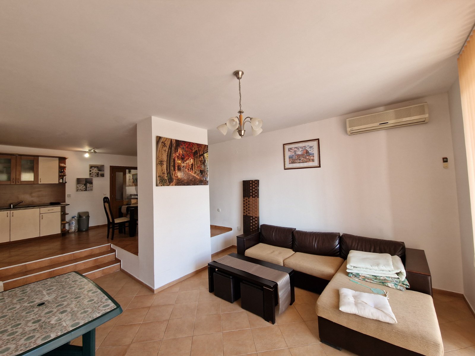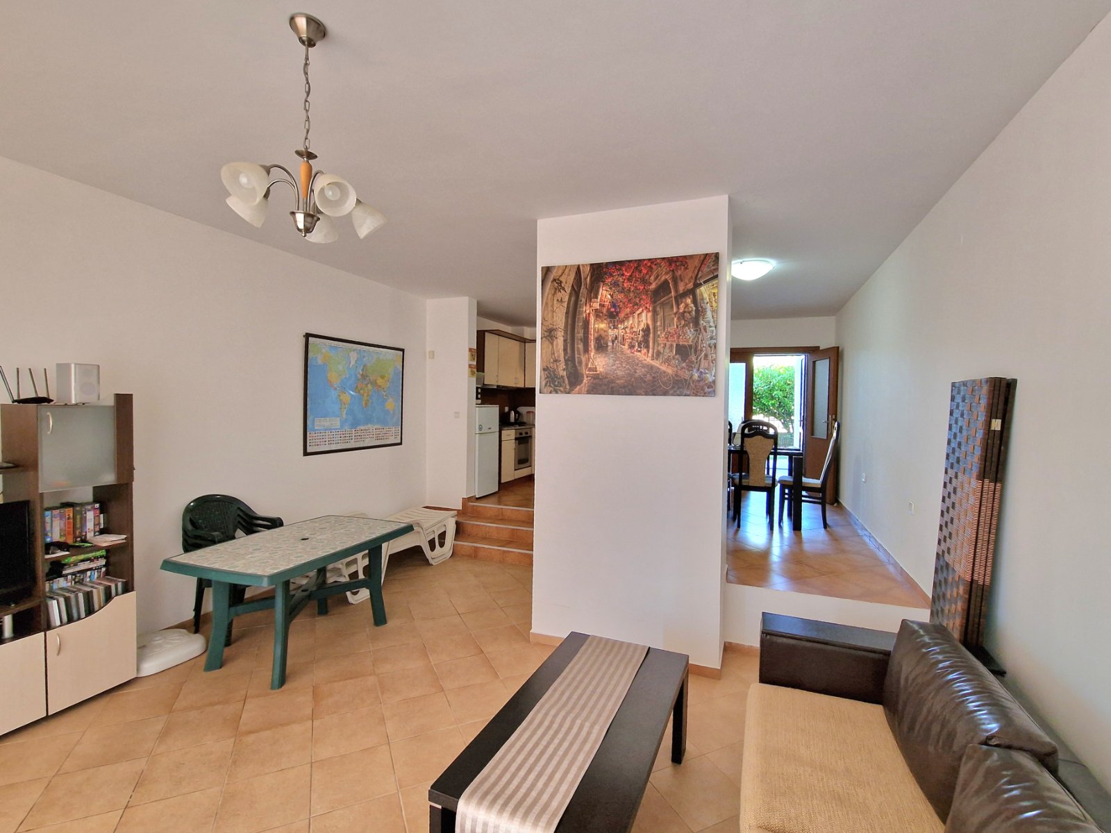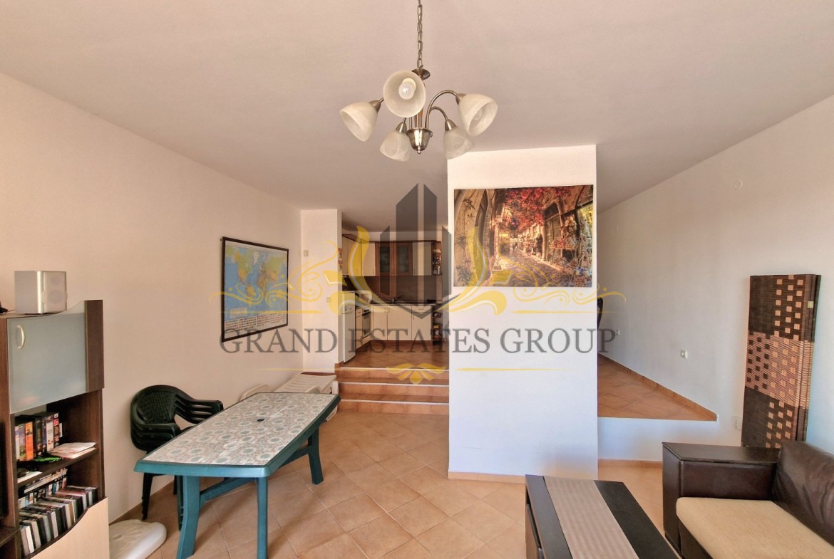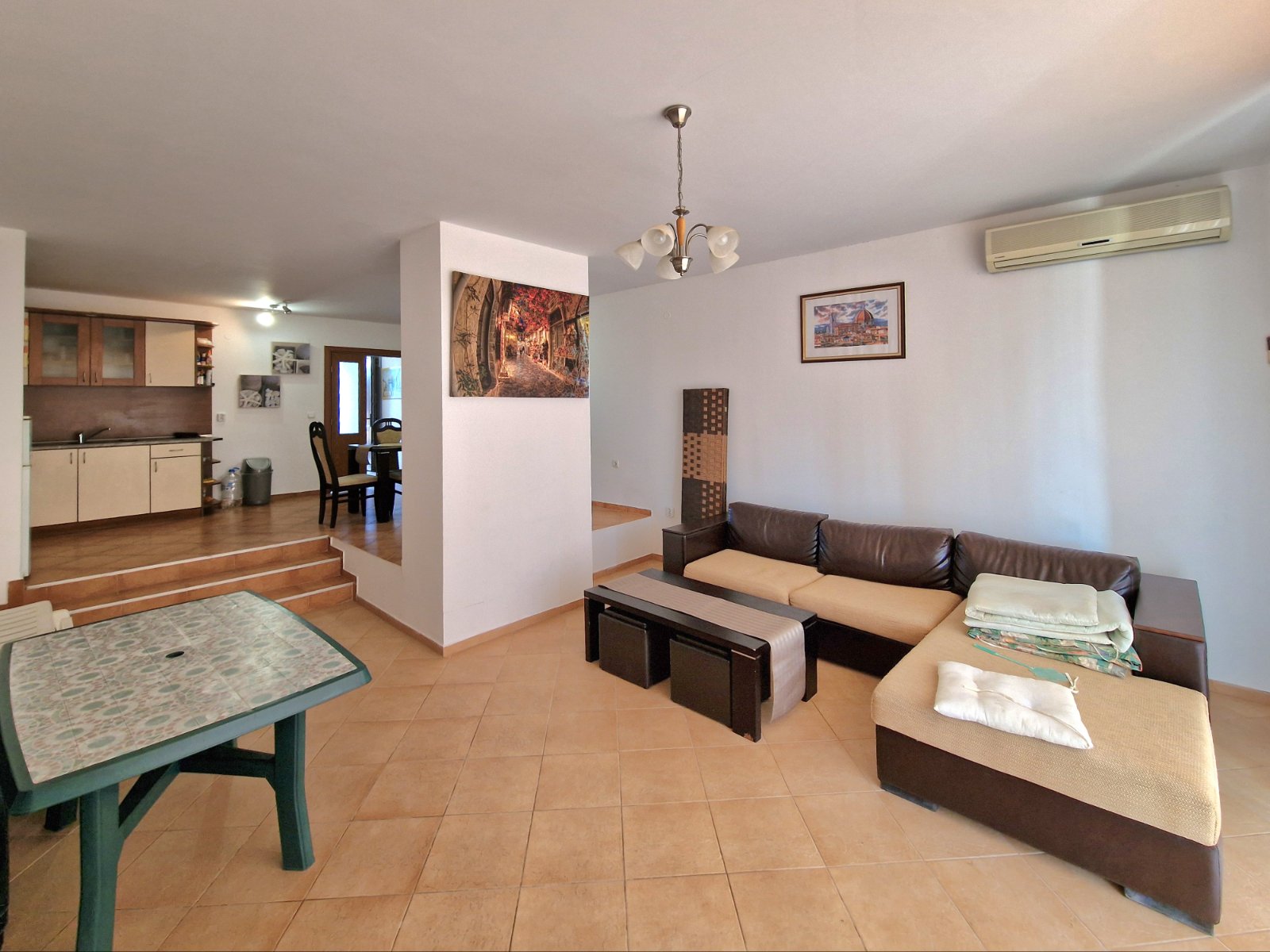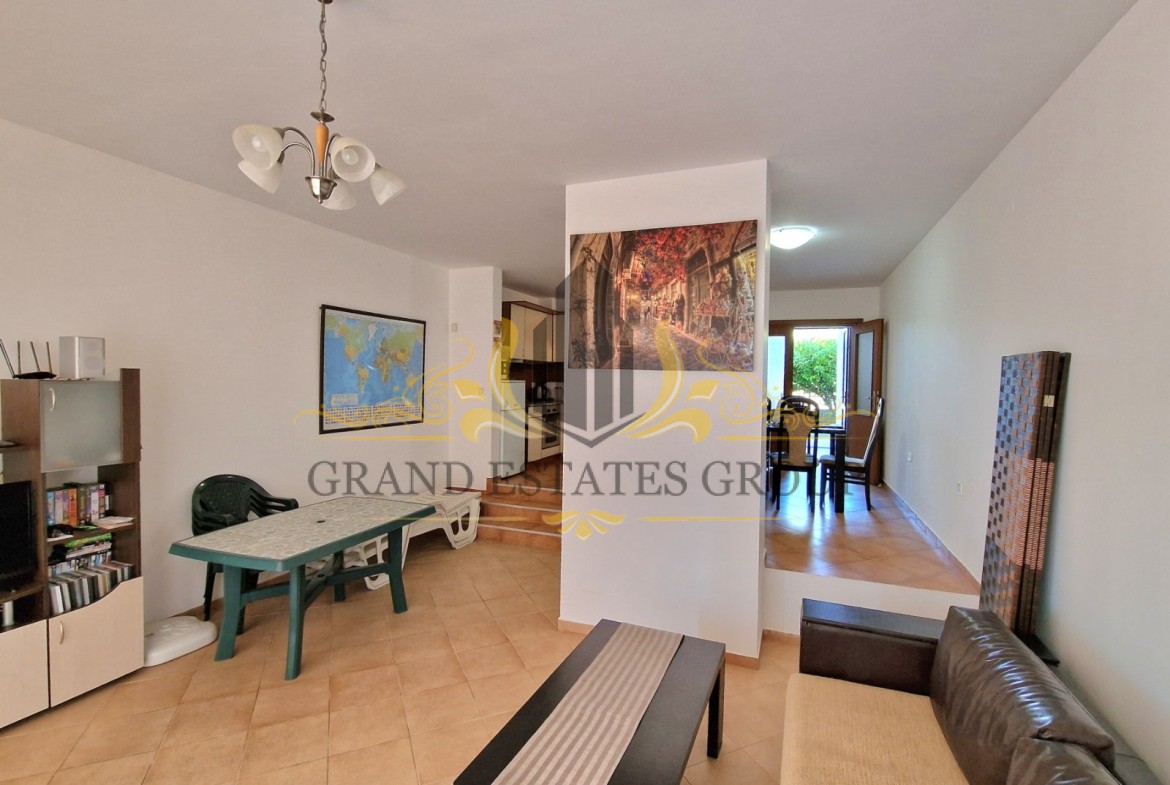 Предлагаем на продажу (эксклюзивно) Вашему вниманию полностью меблированный и оборудованный двухэтажный таунхаус в комплексе в дачной зоне села Кошарица, муниципалитет Несебр. Планировка этажей: – первый этаж – террасированный, большая гостиная и кухня со столовой, ванная комната, прихожая и веранда с видом на бассейн; – второй этаж – две большие отдельные спальни, каждая с ванной комнатой и туалетом и террасой. – Закрытый комплекс в экологически чистом районе; – Фасад с отделкой из натурального камня и минеральной штукатурки; – Круглогодичный контроль доступа и обслуживание; – Отличные планировки и отличное расположение; – Бассейн, зона с шезлонгами, зеленые сады.