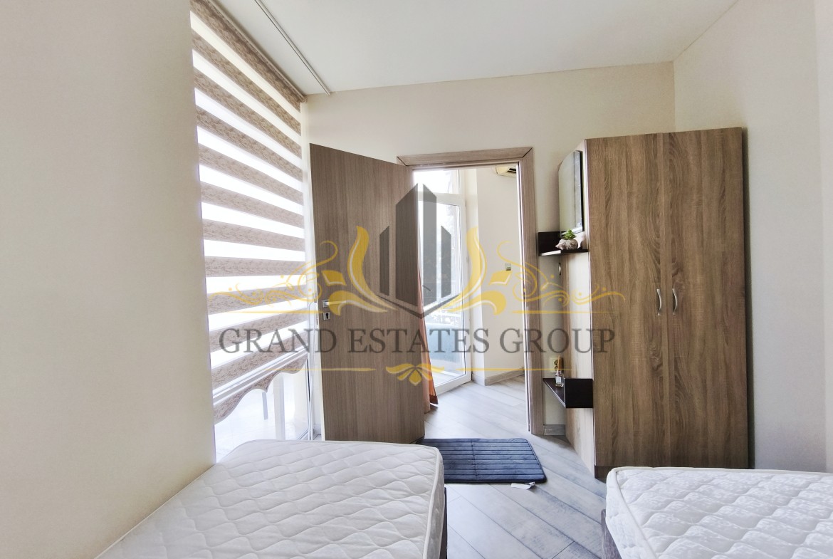 Двухкомнатная квартира общей площадью 61 кв.м. расположена на 3-м этаже в здании с лифтом. Планировка: гостиная с кухонной и обеденной зонами, спальня, санузел, балкон. Квартира полностью оборудована новой мебелью и бытовой техникой.